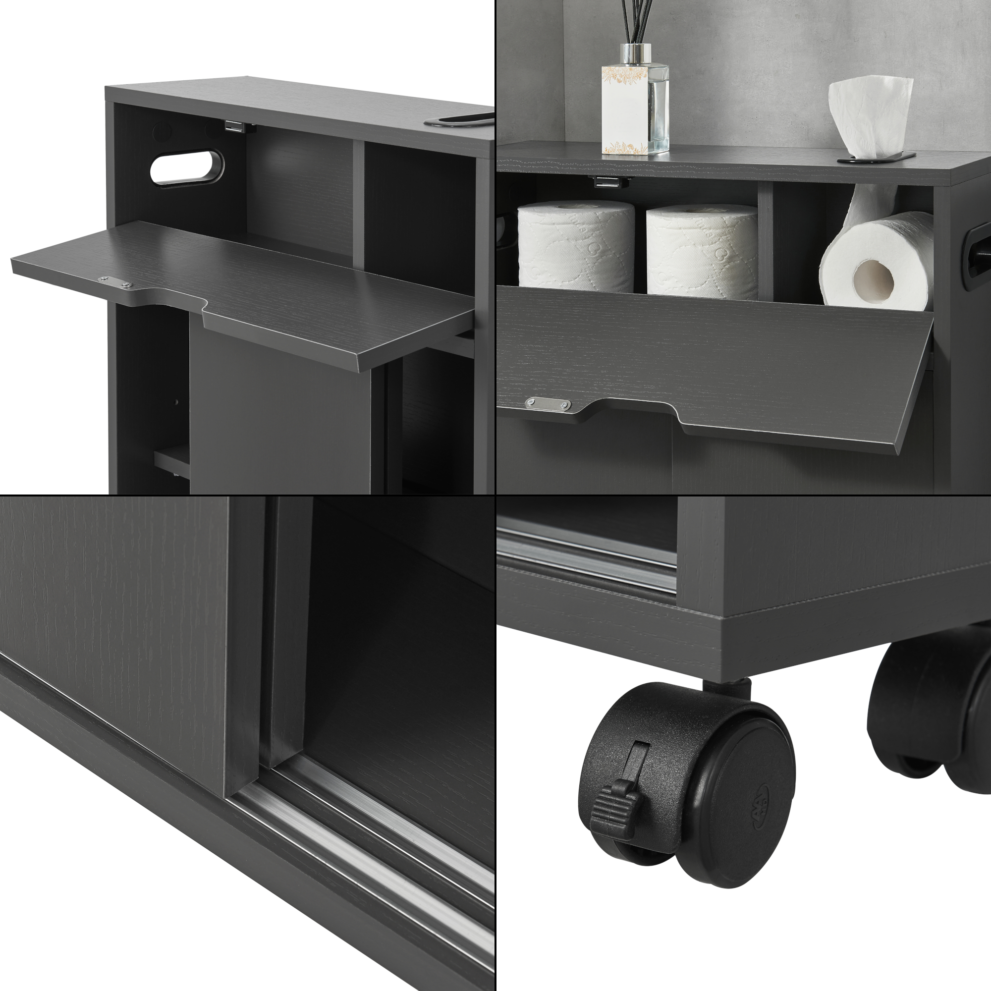 Dulap baie Kempele cu 2 usi glisante si 1 usa pliabila, mobil pe 4 roti gri inchis [en.casa] HausGarden Leisure