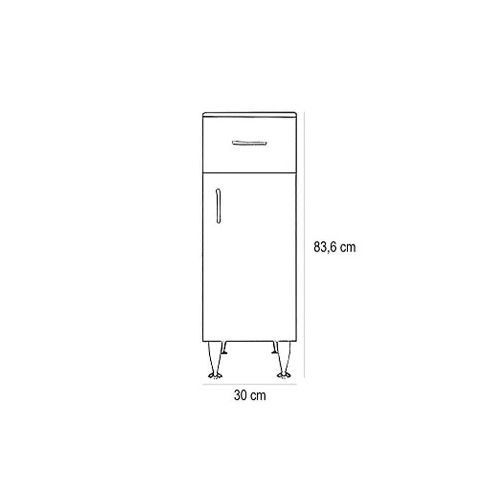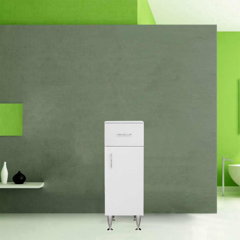Utilizare: recomandat ca mobilier de baie pentru depozitarea cosmeticelor, prosoapelor mici, hârtiei igienice sau accesoriilor, lângă lavoar ori în colțuri înguste. Se potrivește în special când ai nevoie de un dulap baie cu sertar și ușă, cu deschidere pe partea dreapta.