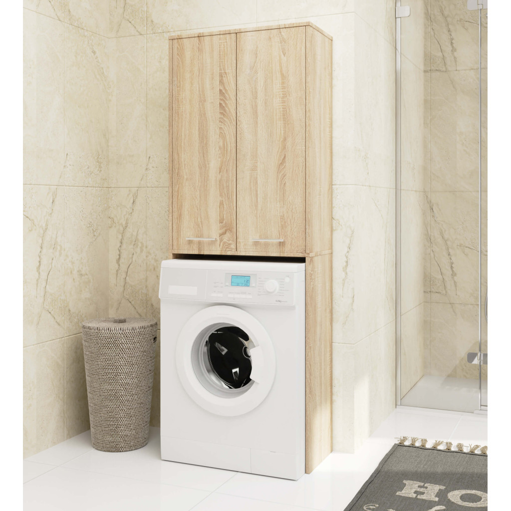 Dulap baie pentru masina de spalat, 2 usi si 4 rafturi, stejar sonoma