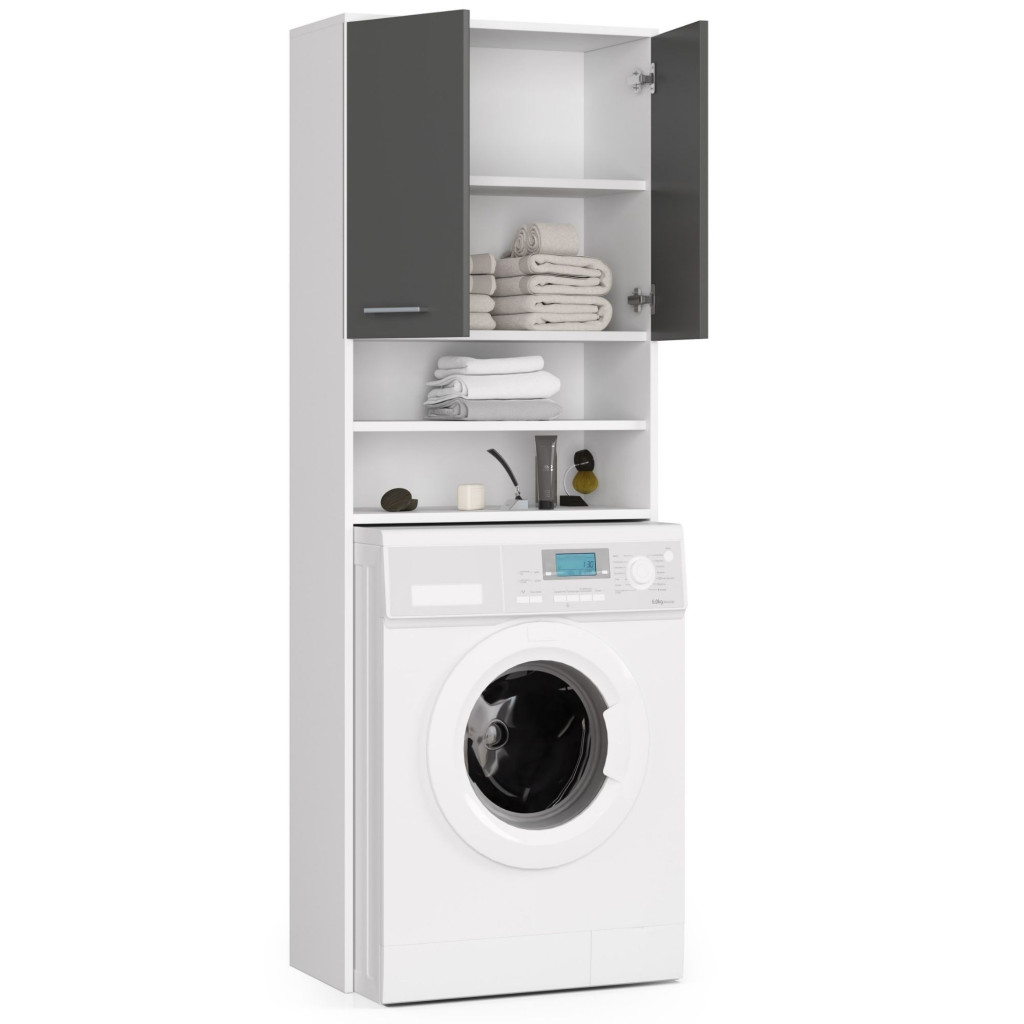 Dulap baie pentru masina de spalat cu usi si rafturi, 64x30x180 cm, alb-grafit