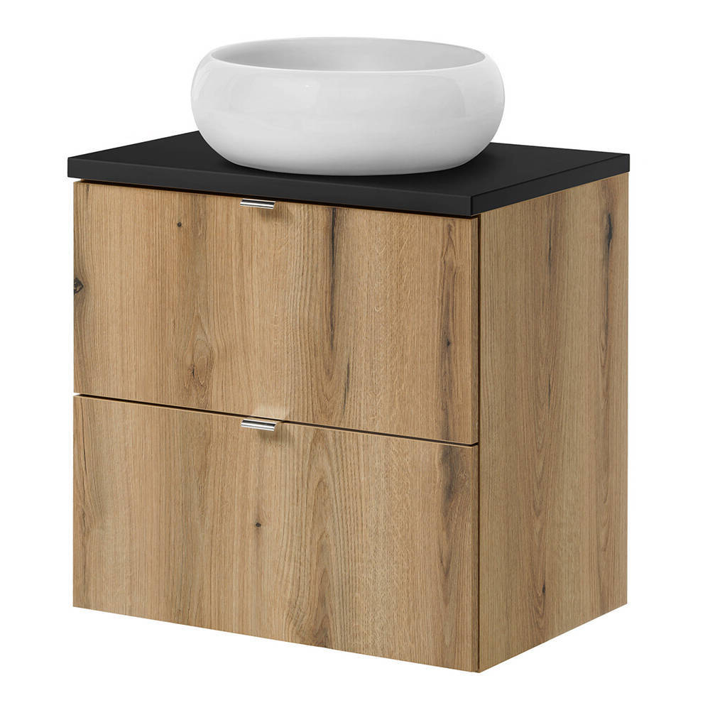 Dulap baie suspendat cu 2 sertare, 60 cm, stejar și negru, Skelbolu