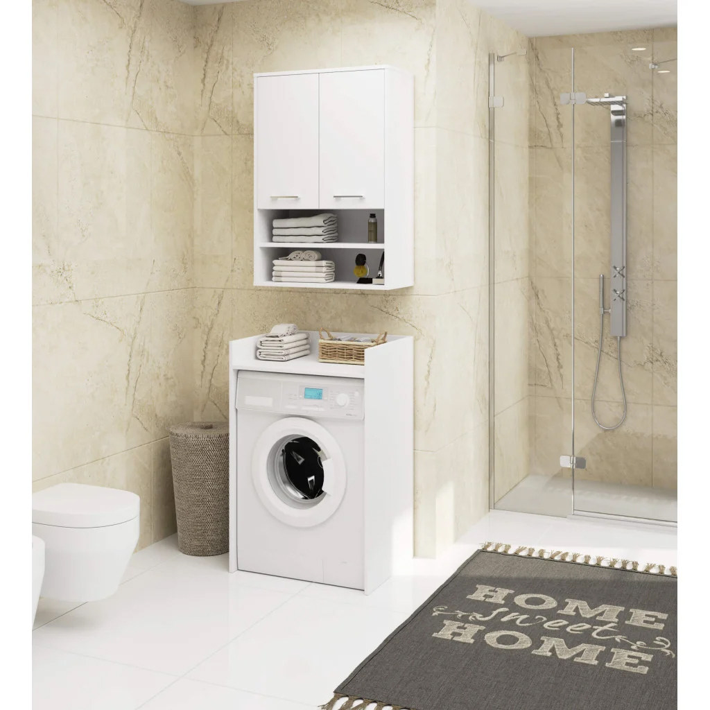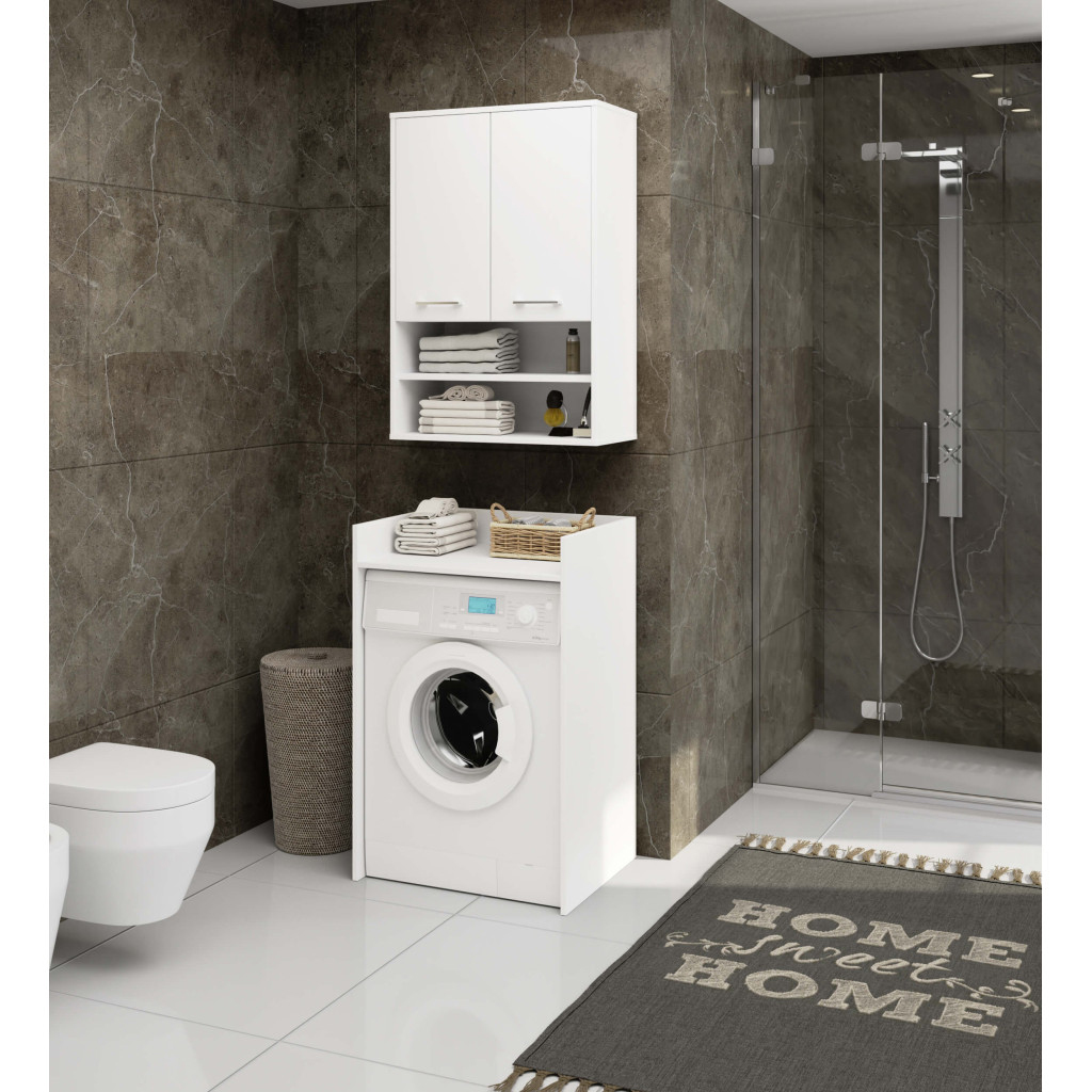 Dulap baie suspendat, cu 2 usi si 2 rafturi deschise, PAL 16 mm, 64x30x94 cm, alb