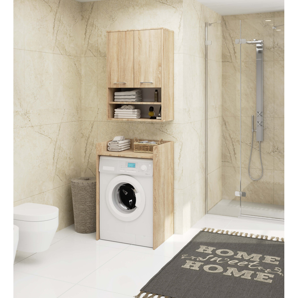Fiind un dulap suspendat pentru baie, ajuta la economisirea spatiului si este ideal pentru montaj deasupra masinii de spalat sau langa alte corpuri de mobilier. Finisajul cald stejar sonoma se integreaza usor in amenajari diverse, de la clasice la contemporane.