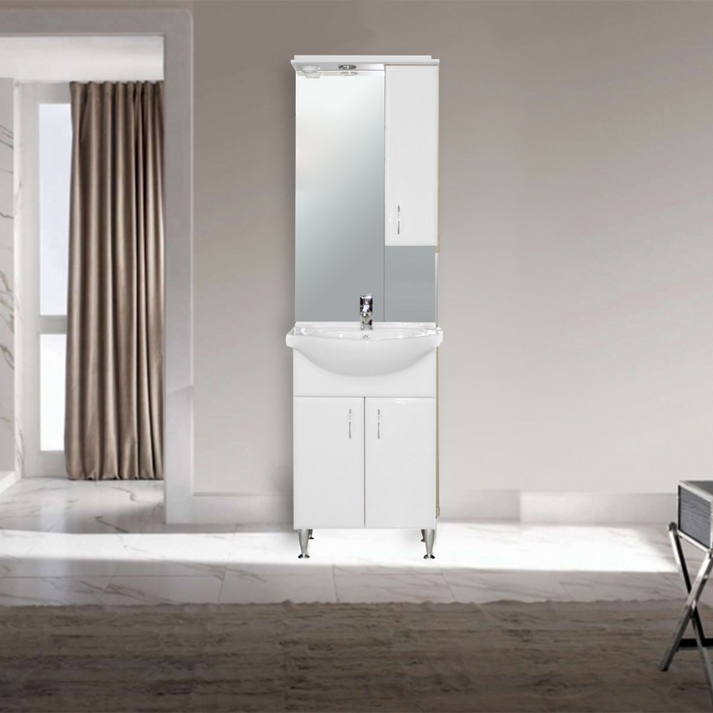 Dulap baie suspendat cu oglindă Leziter Bianca Plus 55, alb lucios, dreapta