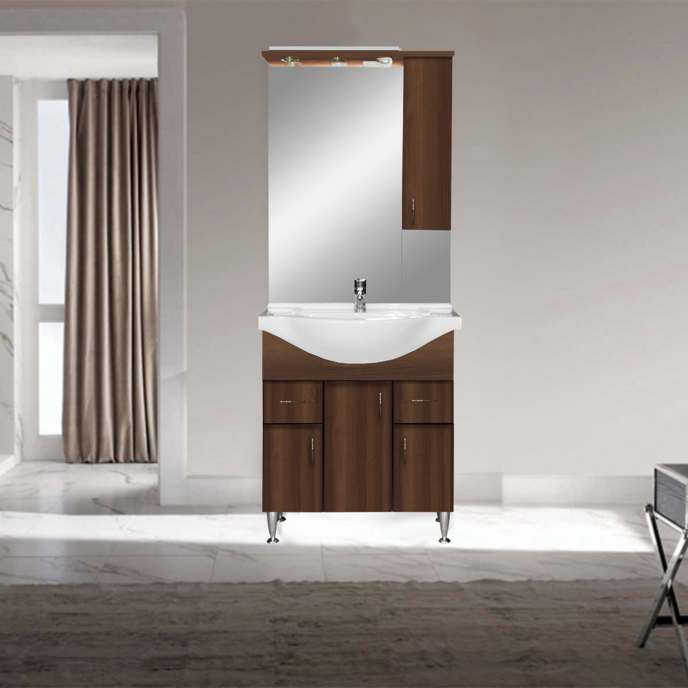 Dulap baie suspendat cu oglindă Leziter Bianca Plus 75, Aida nuc, dreapta