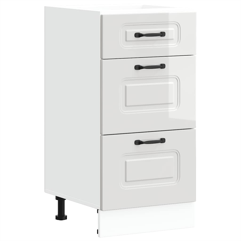 Dulap bază de bucătărie „Kalmar” lemn prelucrat alb lucios GartenMobel Dekor