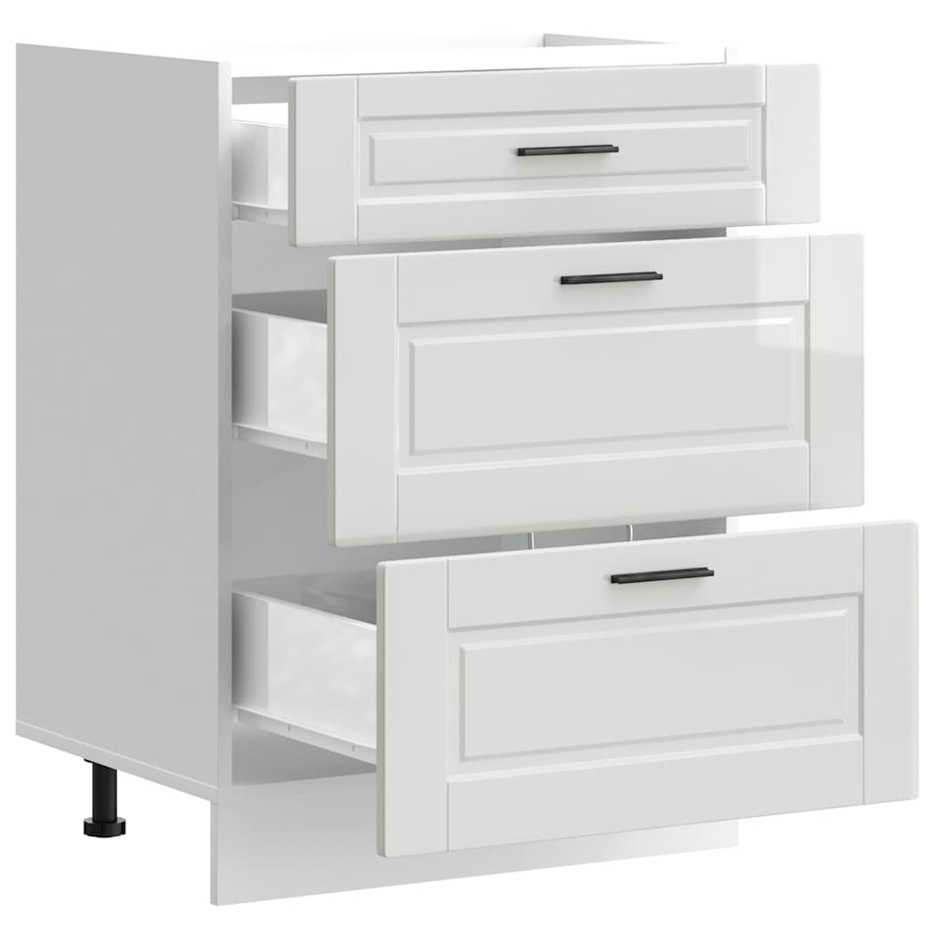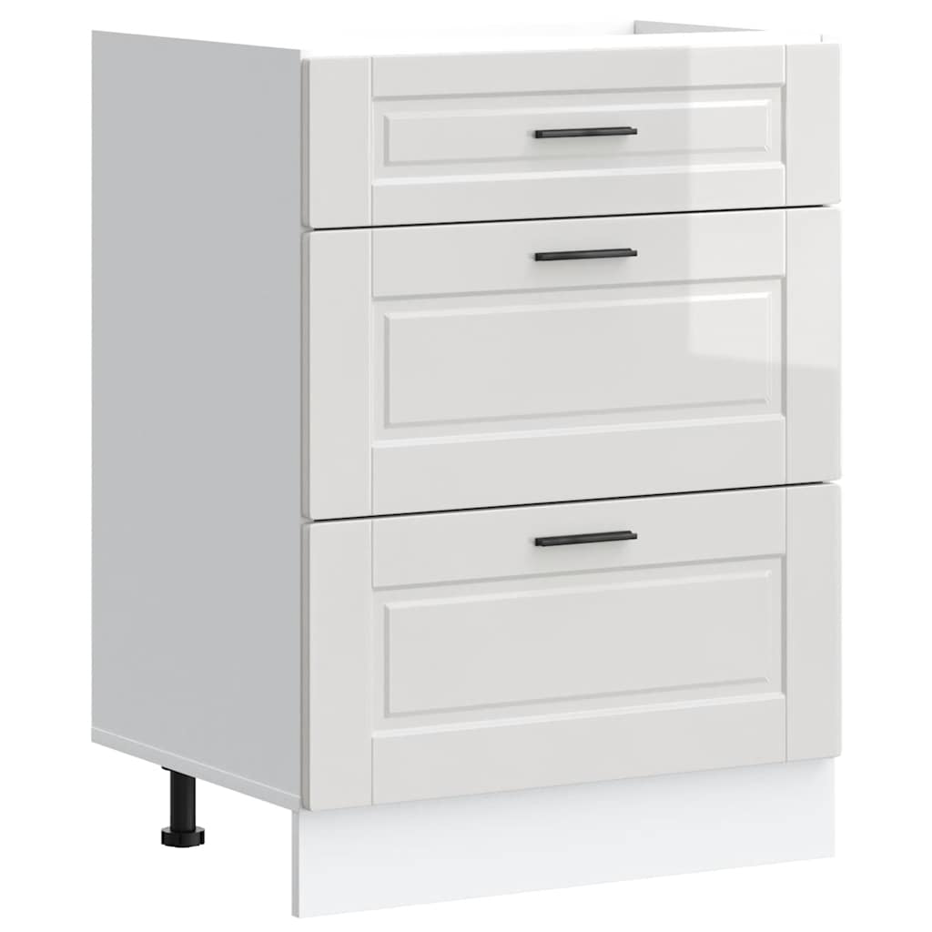 Dulap bază de bucătărie „Porto” din lemn prelucrat alb lucios GartenMobel Dekor