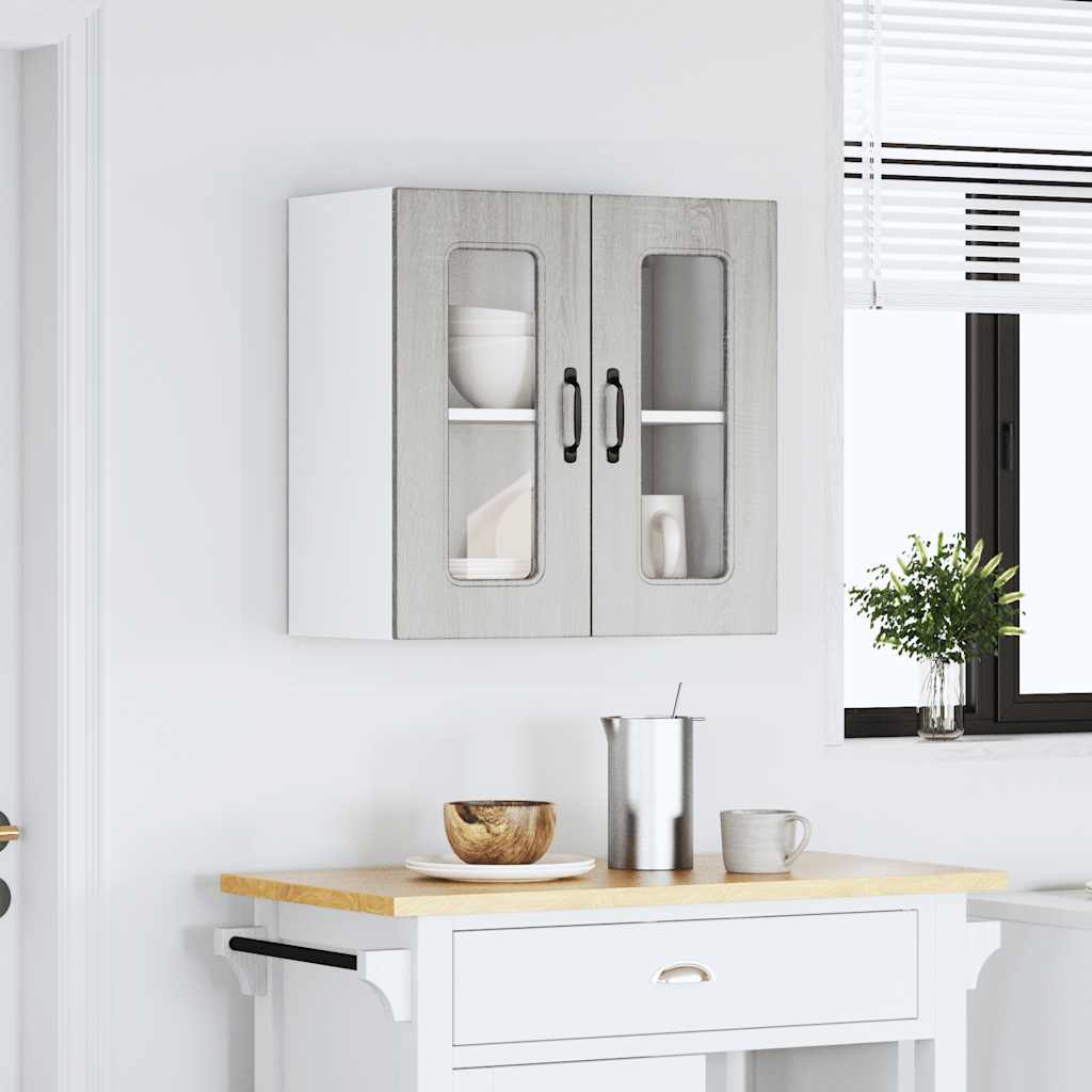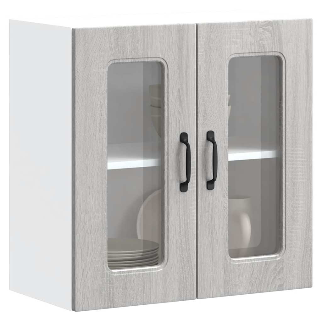Dulap bucătărie cu ușă sticlă Kalmar lemn prelucrat gri Sonoma GartenMobel Dekor