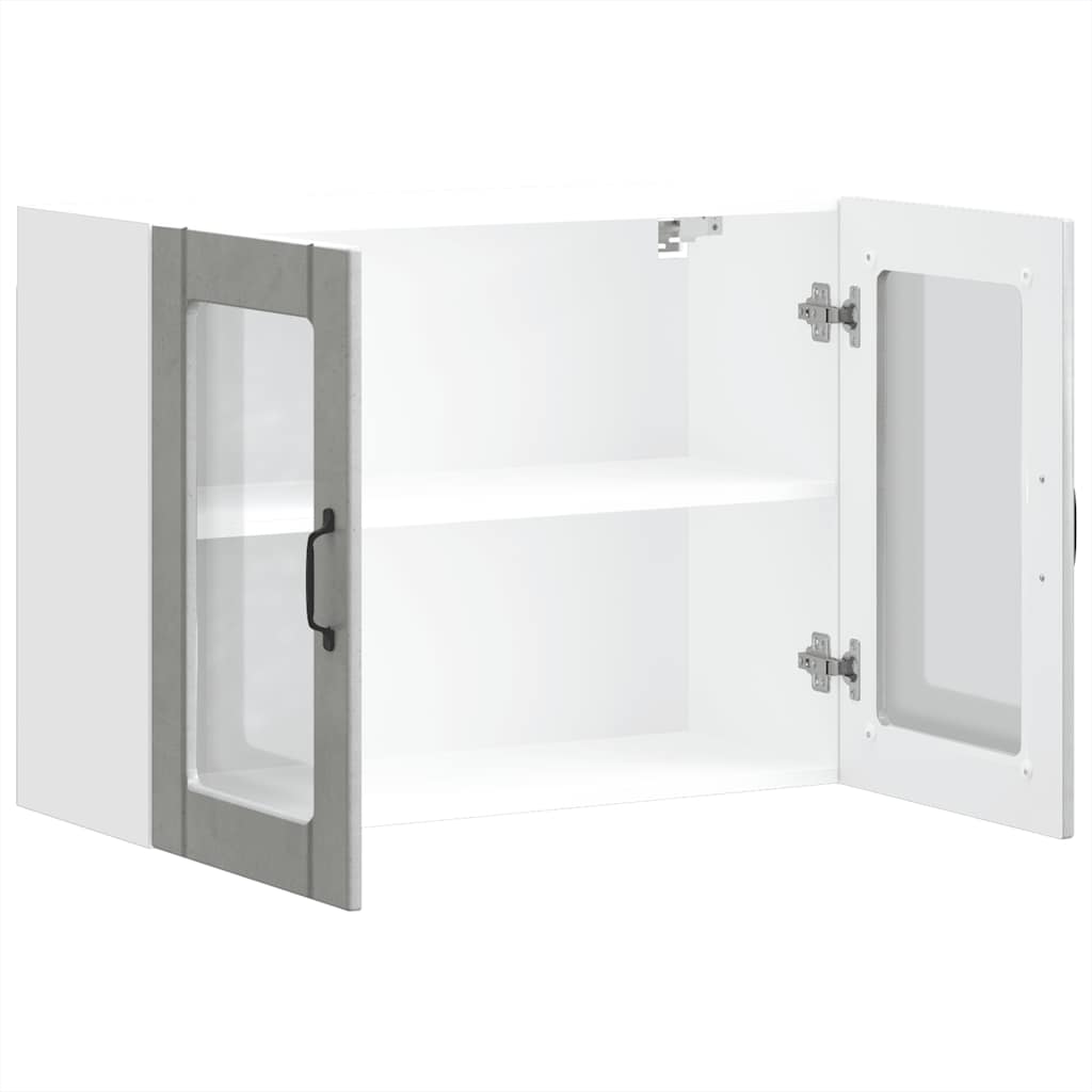 Dulap bucătărie cu ușă sticlă „Lucca” Lemn prelucrat gri beton GartenMobel Dekor