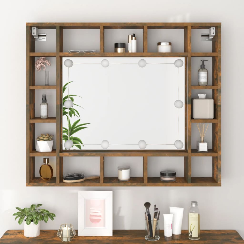 Dulap cu oglindă și LED, stejar fumuriu, 91x15x76,5 cm GartenMobel Dekor
