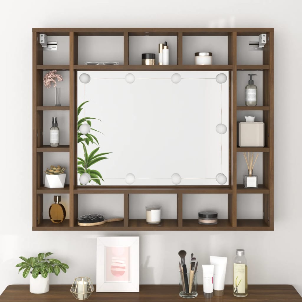 Dulap cu oglindă și LED, stejar maro, 91x15x76,5 cm GartenMobel Dekor
