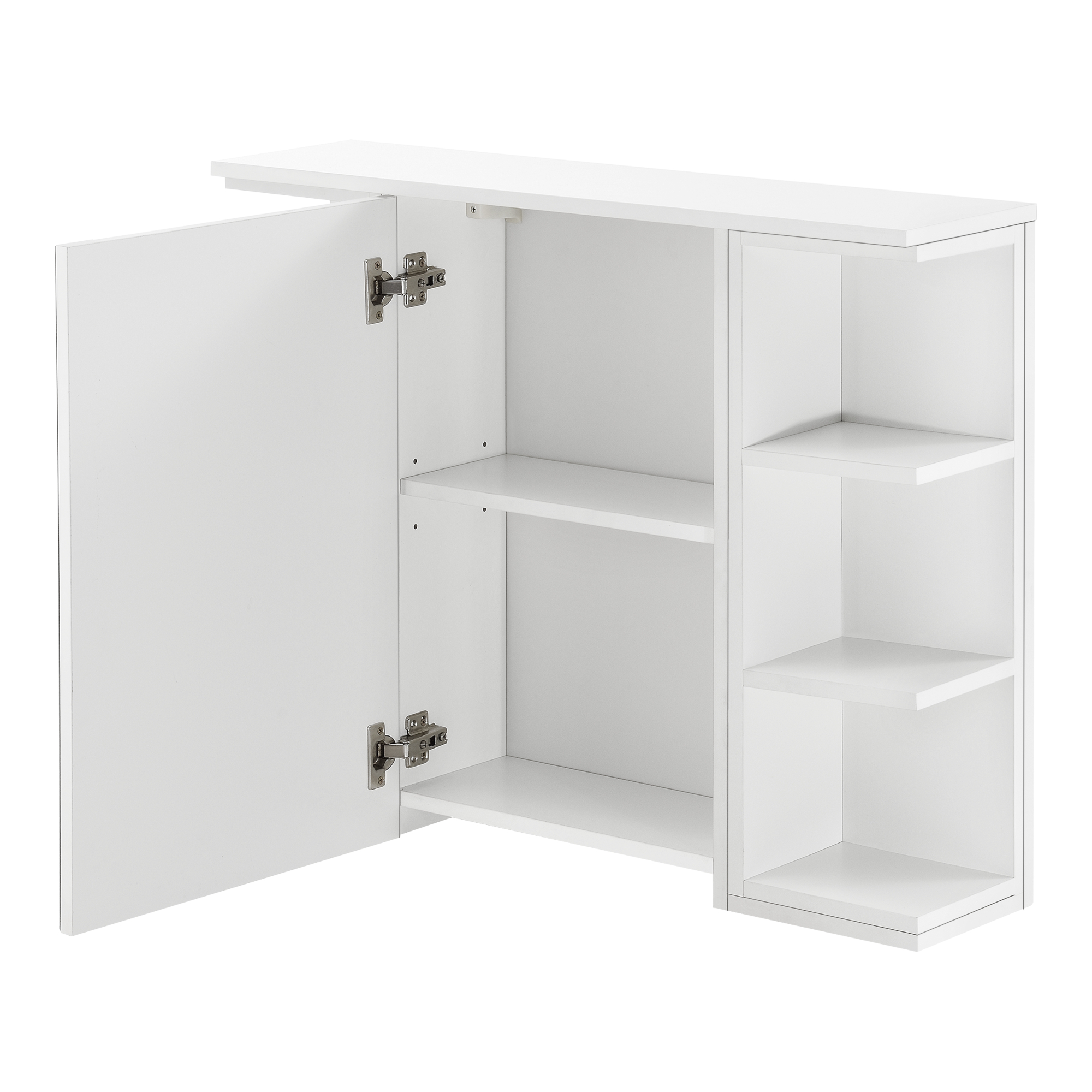 Acest dulap baie suspendat oferă loc suficient pentru cosmetice, produse de igienă și accesorii esențiale. Ușa cu oglindă este practică pentru rutina zilnică, iar raftul interior reglabil pe înălțime permite organizarea flexibilă a obiectelor. Cele 3 polițe exterioare din stânga și cele 3 din dreapta sunt utile pentru produsele pe care vrei să le ai mereu la îndemână.