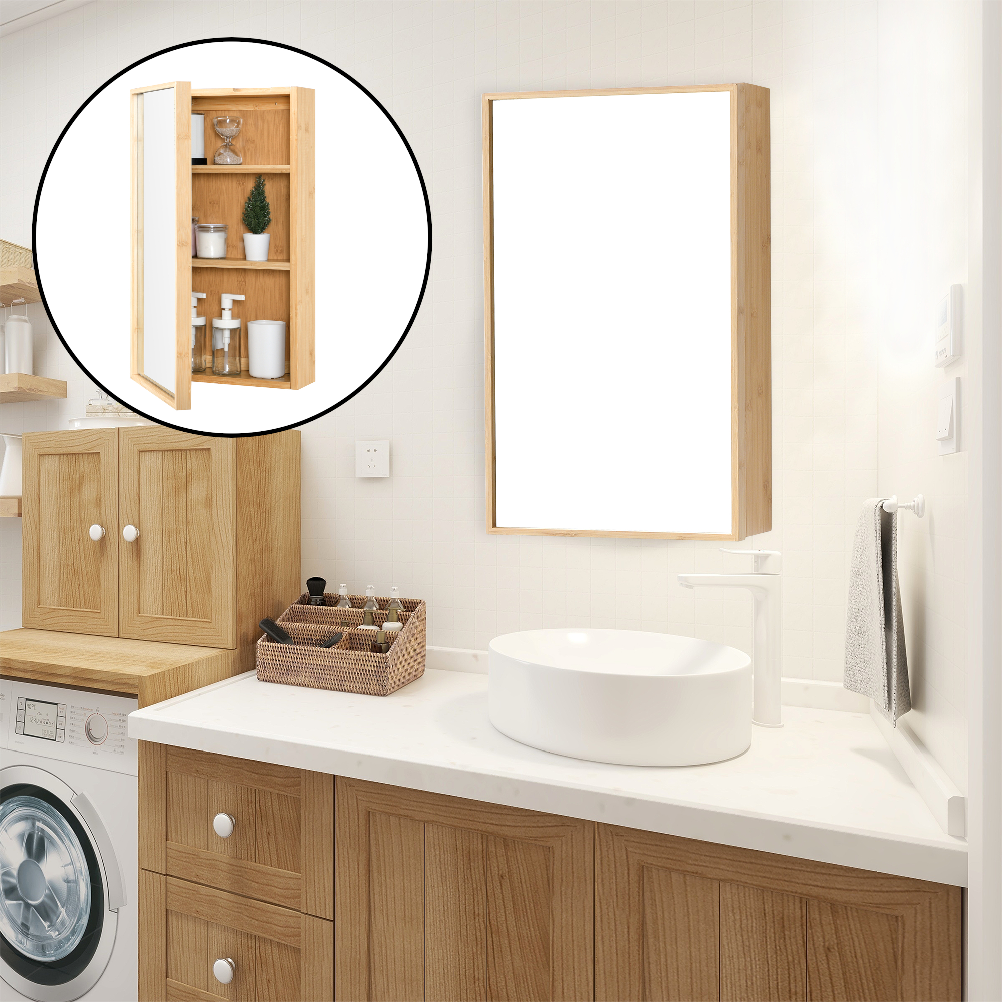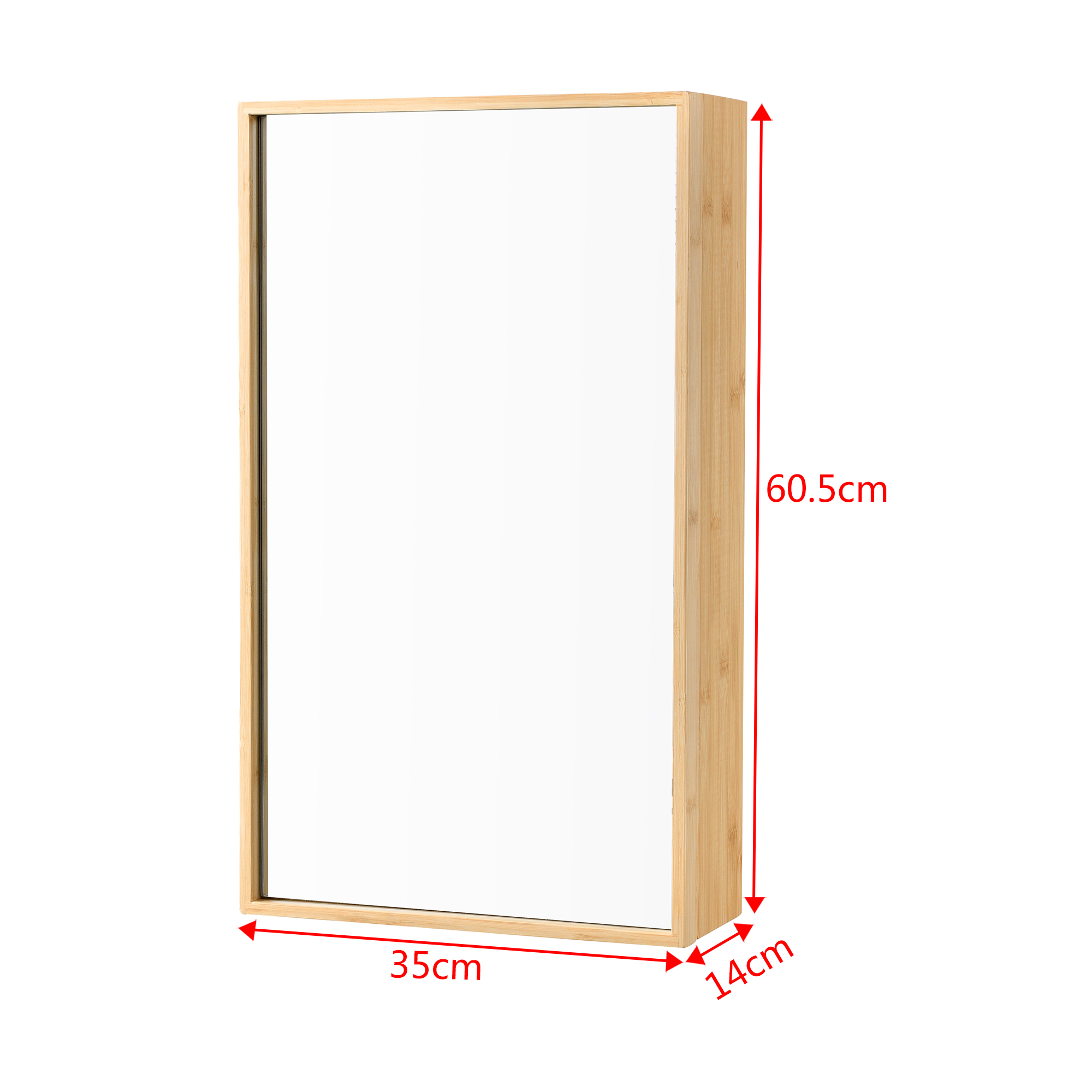 Dulap de baie cu oglindă Ikorfat din bambus natur 60,5 x 35 x 14 cm