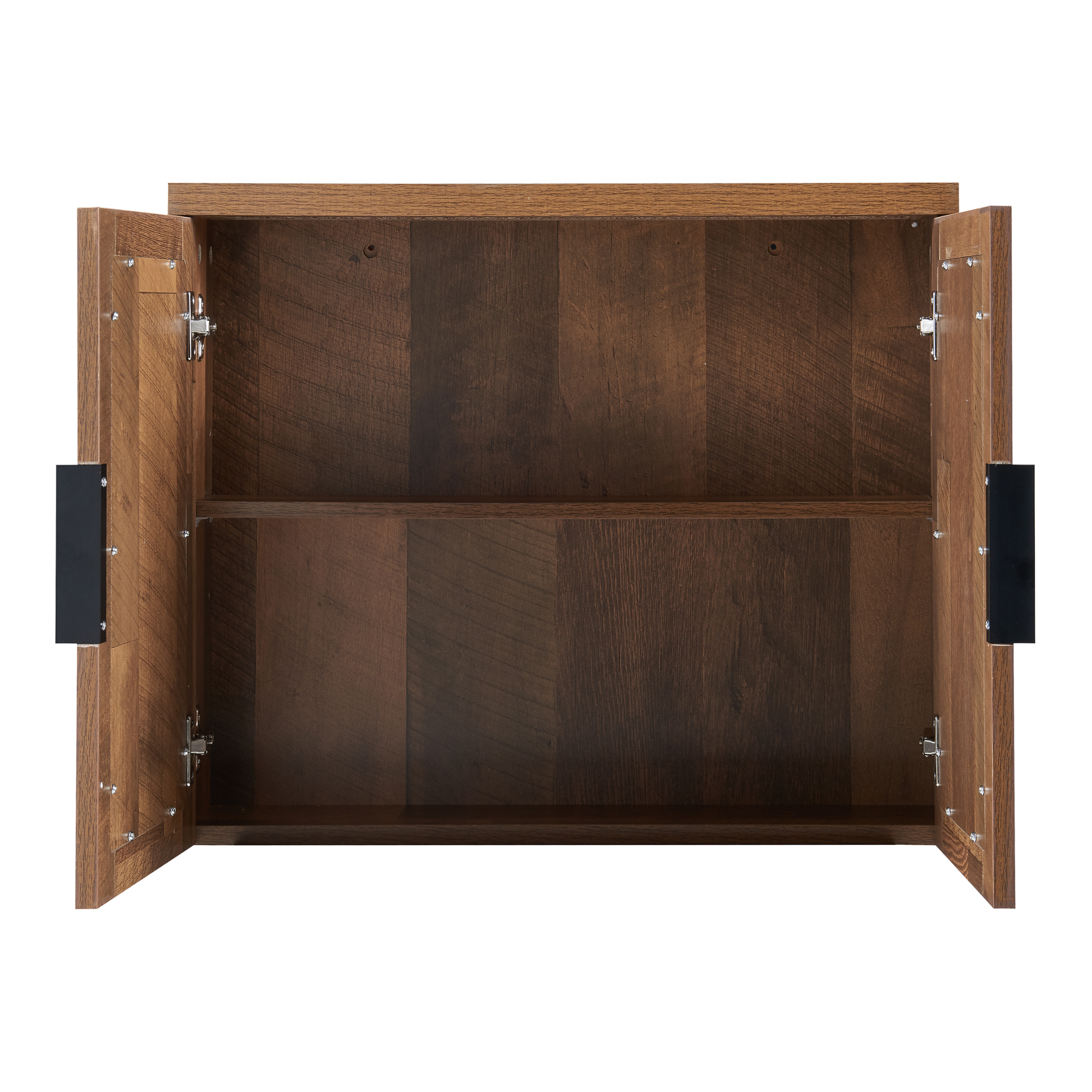 Prevăzut cu două uși cu front oglindă, modelul oferă acces facil la obiectele din interior și contribuie la senzația de luminozitate și spațiu în baie. Finisajul în nuanță de nuc adaugă un aspect cald și modern, potrivit atât pentru băi clasice, cât și pentru interioare contemporane.