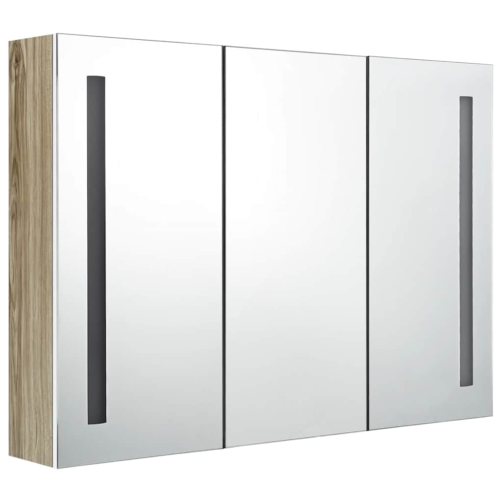 Dulap de baie cu oglindă și LED, alb și stejar, 89x14x62 cm GartenMobel Dekor