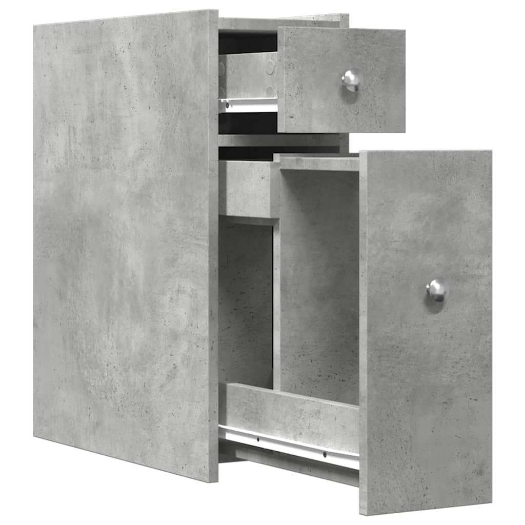 Dulap de baie îngust cu roți, gri beton, lemn prelucrat GartenMobel Dekor