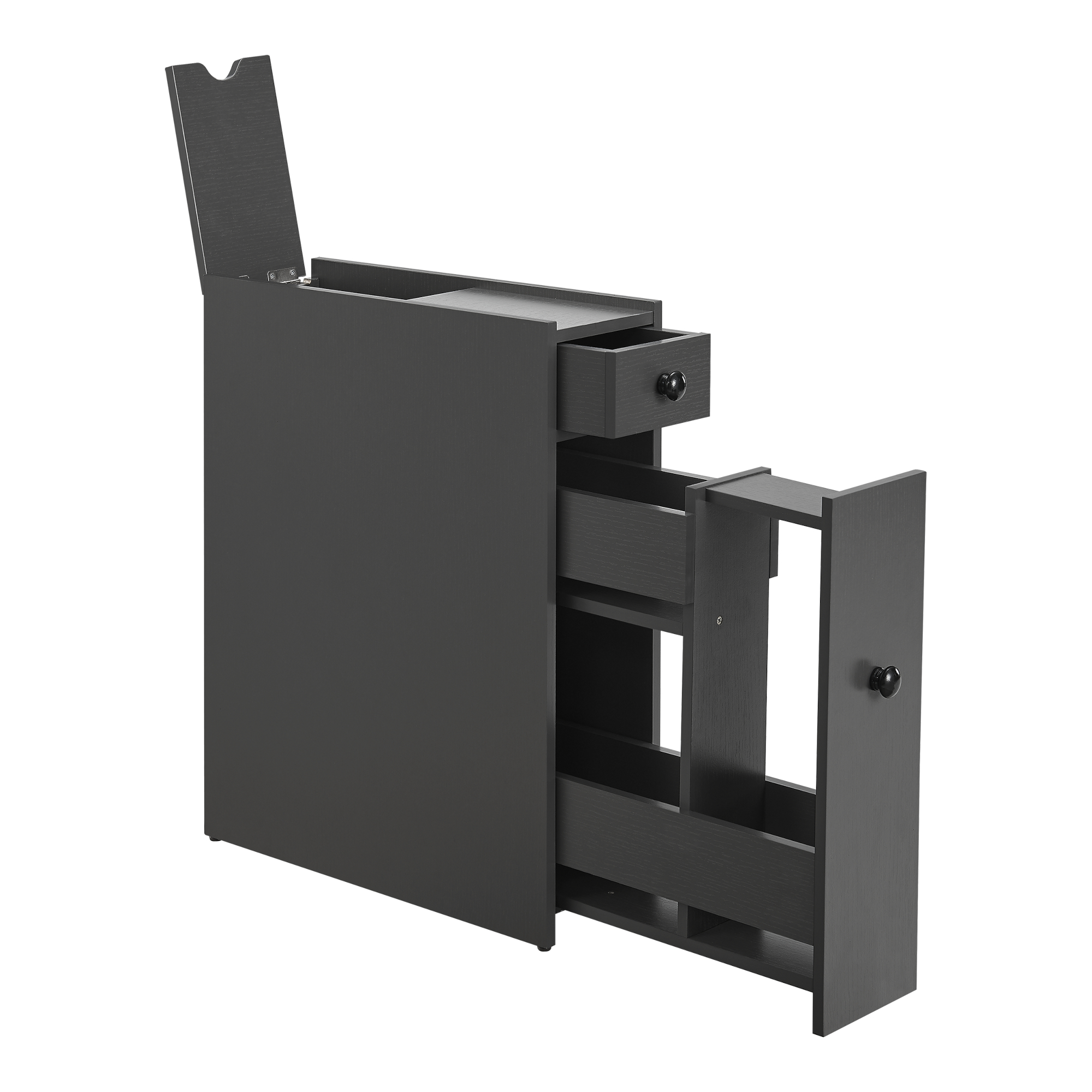 Poate fi amplasat lângă vasul de toaletă, chiuvetă sau într-un colț liber, pentru a valorifica inteligent fiecare centimetru. Este o soluție practică pentru cei care caută un corp de baie îngust cu aspect elegant și funcționalitate ridicată.