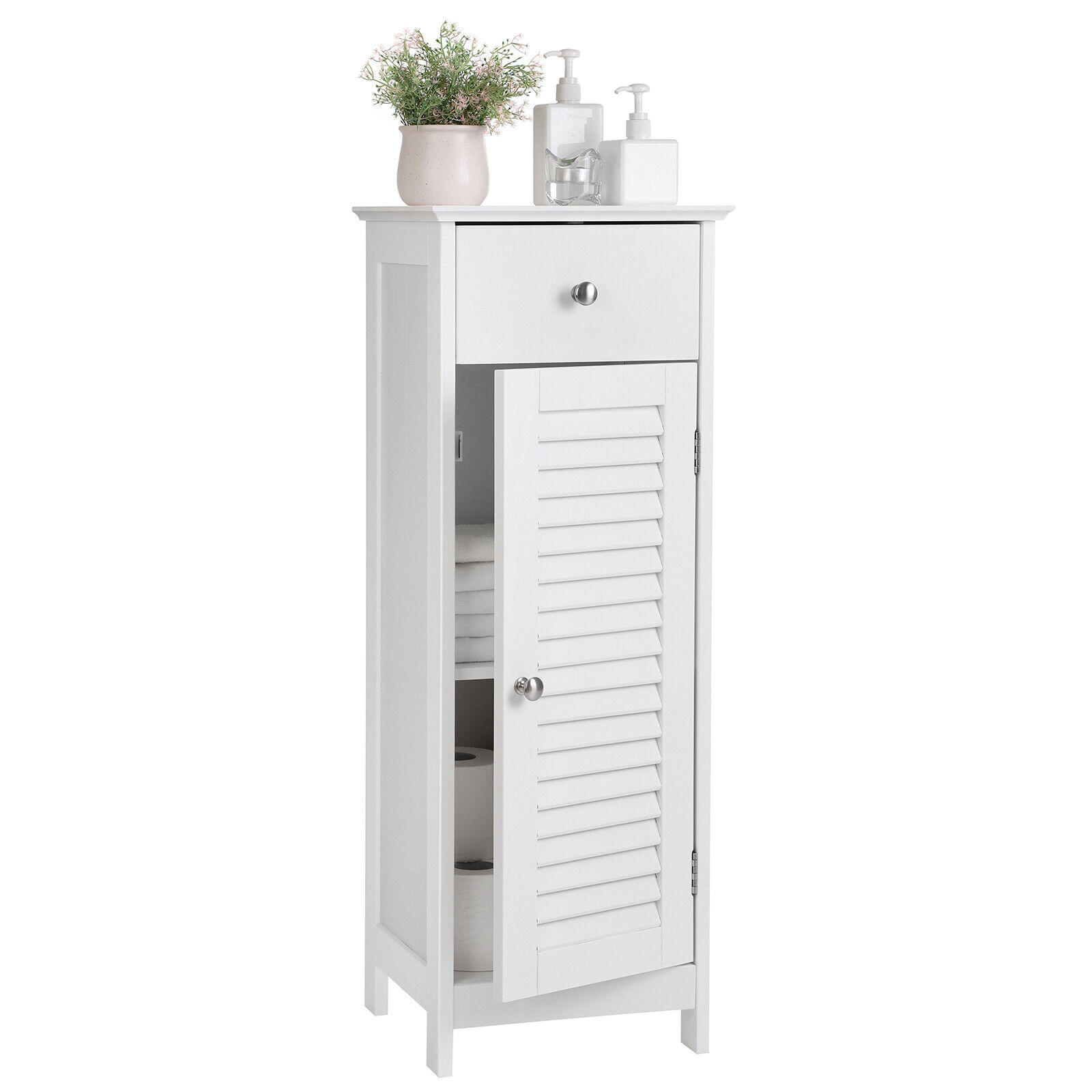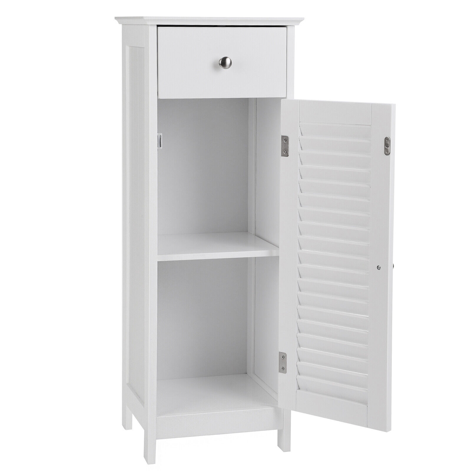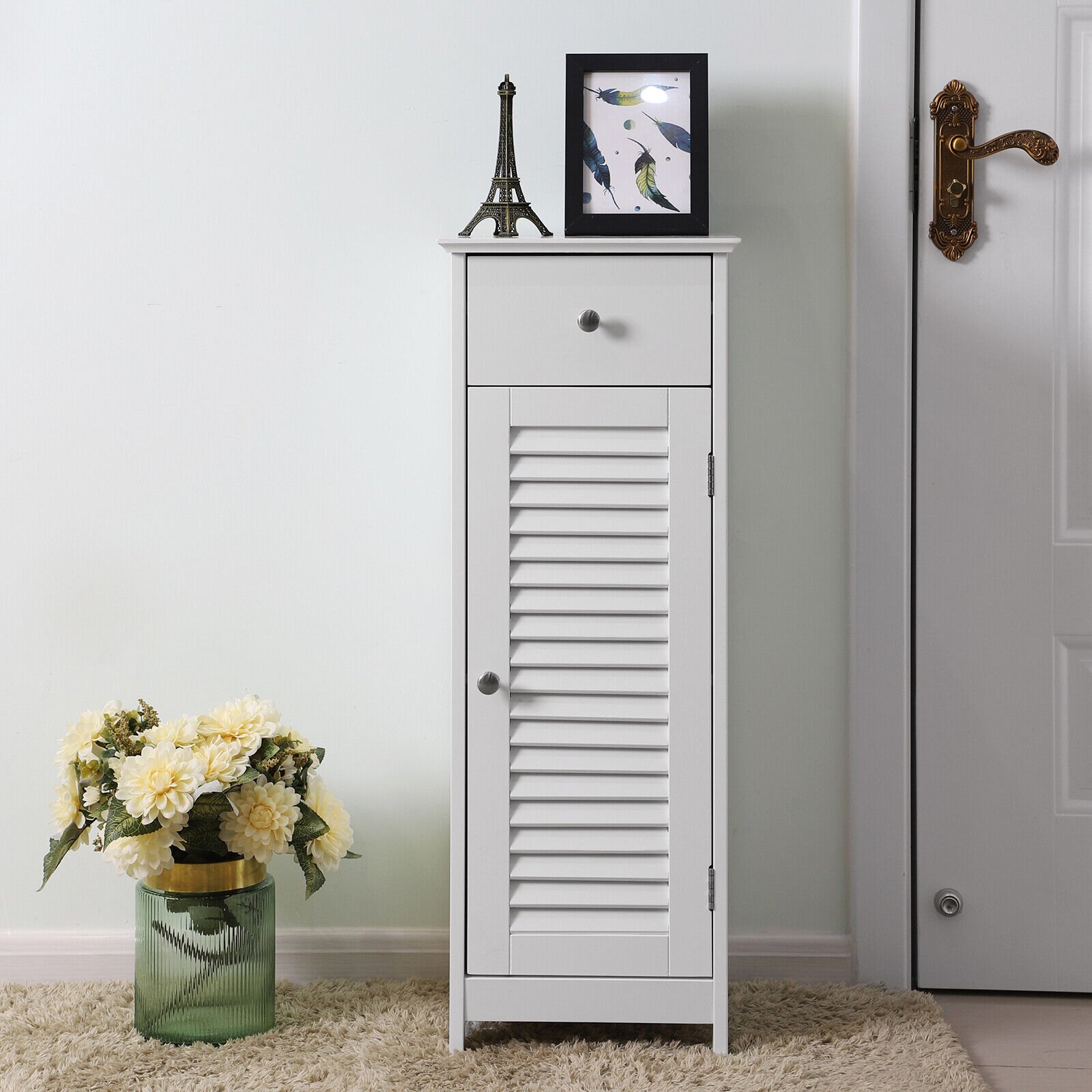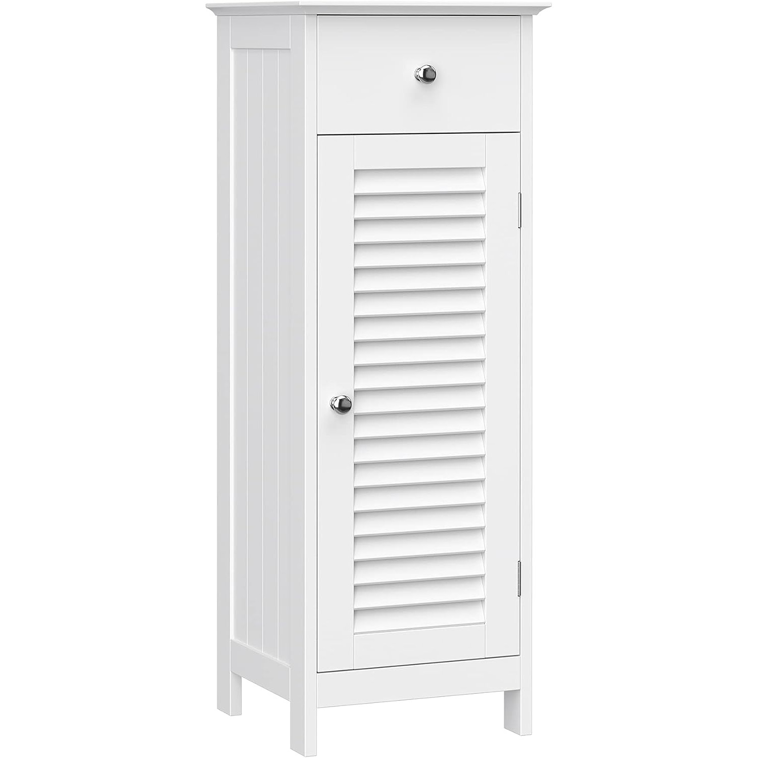 Dulap de baie îngust VASAGLE, alb, cu sertar și ușă cu lamele, 87 cm