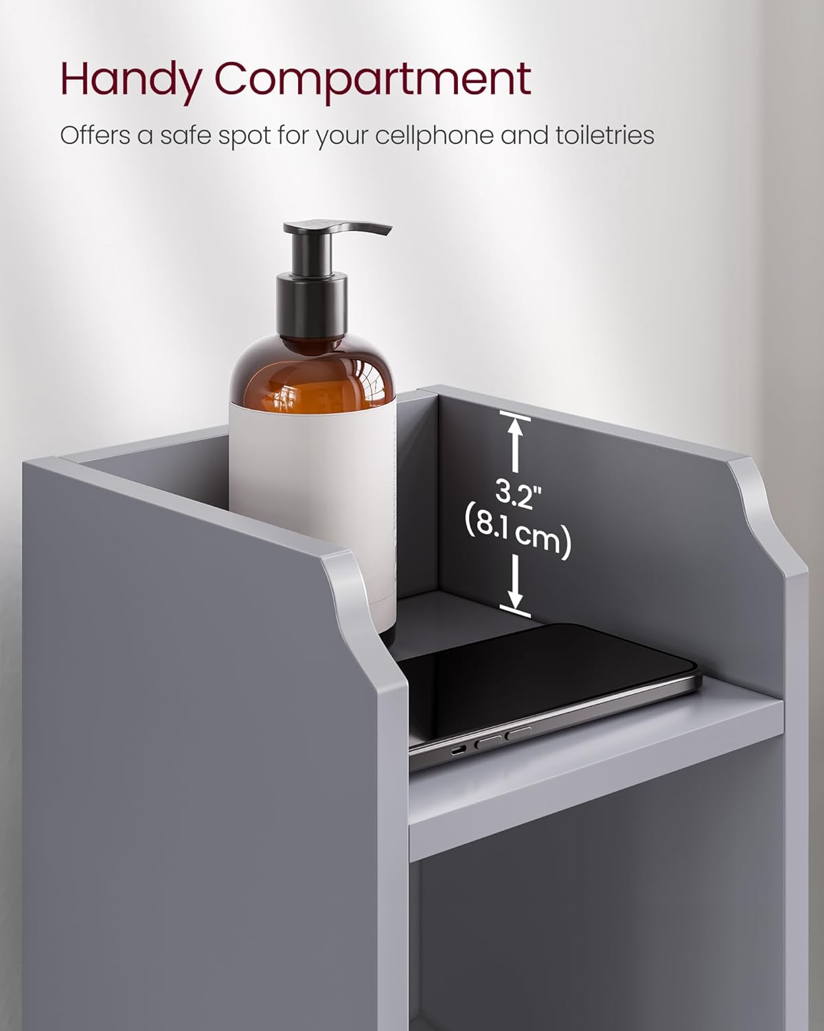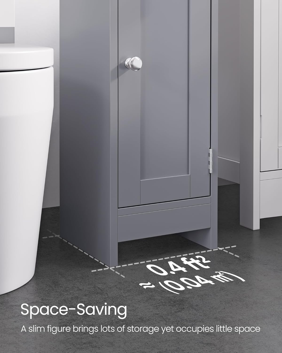 Dulap de baie îngust VASAGLE cu rafturi și ușă, 18x20x80 cm, gri