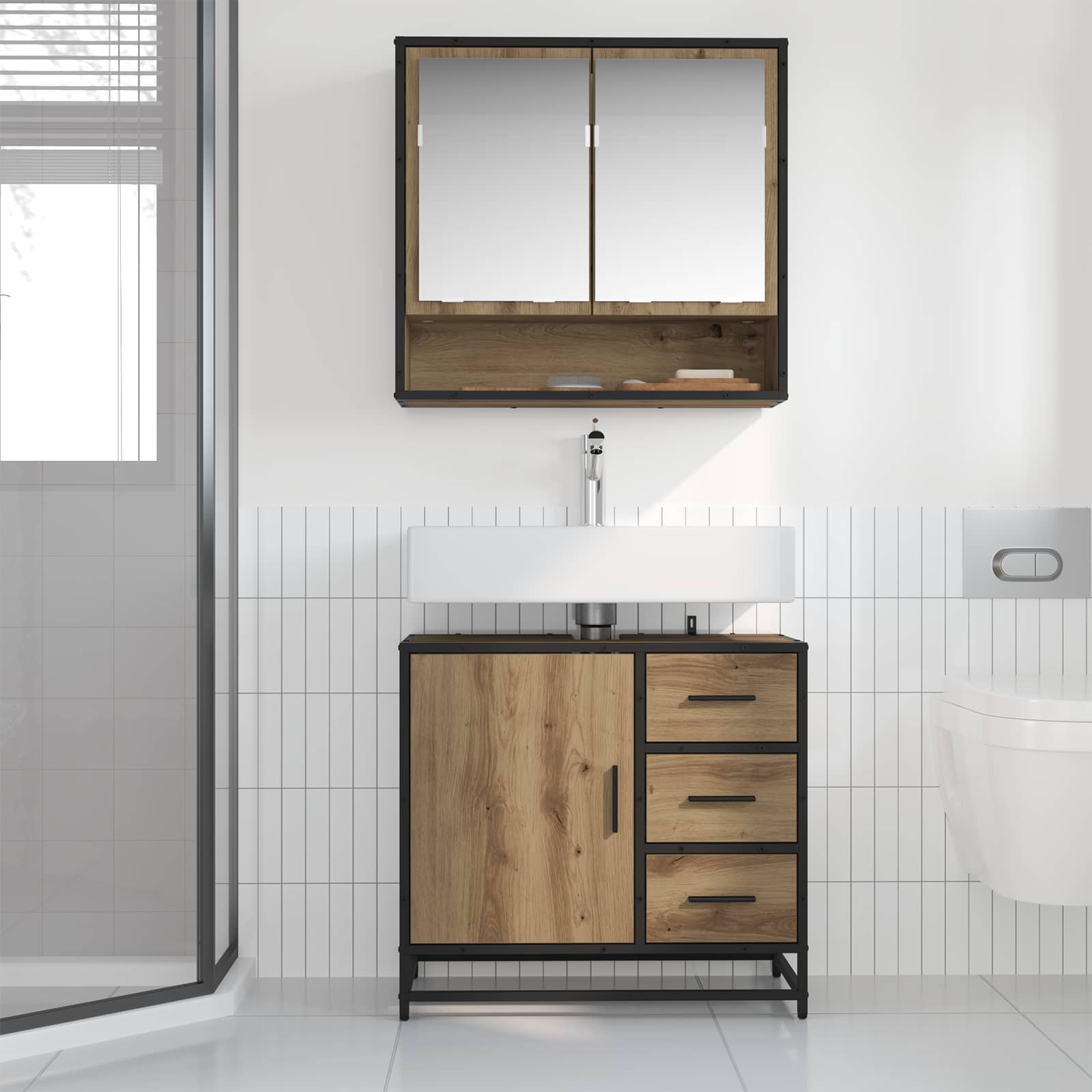 Dulap de Baie Stejar Artizanal 65 x 33 x 60 cm Lemn compozit GartenMobel Dekor