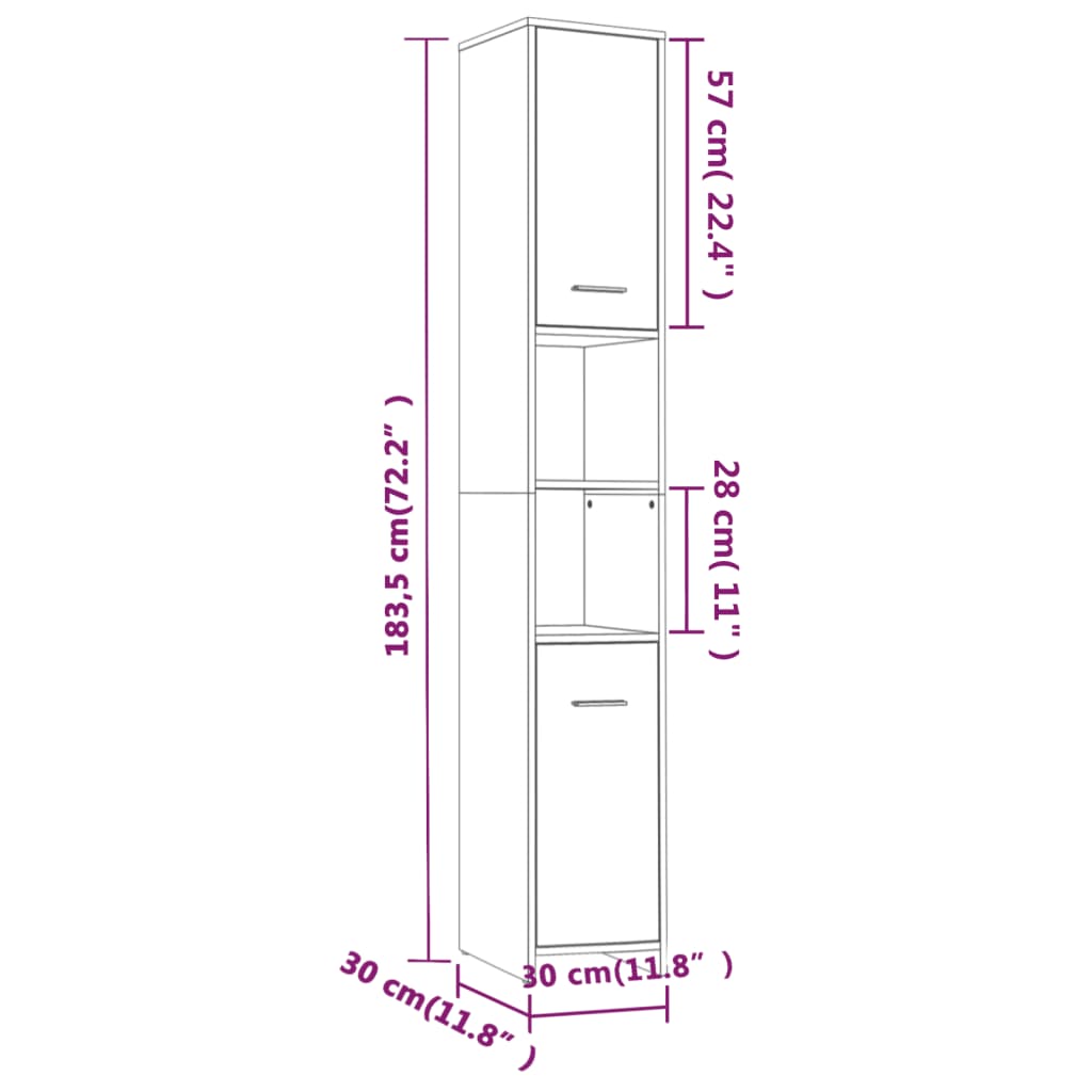 Dulap de baie, stejar fumuriu, 30x30x183,5 cm, lemn prelucrat GartenMobel Dekor