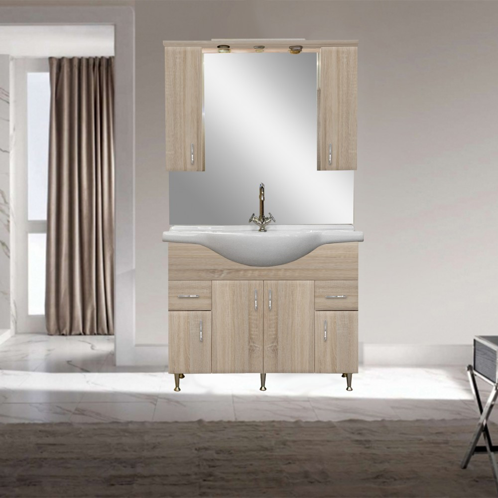 - Design clasic în finisaj stejar Sonoma, ușor de integrat în majoritatea băilor