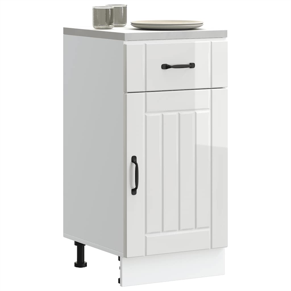 Dulap de bază de bucătărie „Lucca” lemn prelucrat alb lucios GartenMobel Dekor