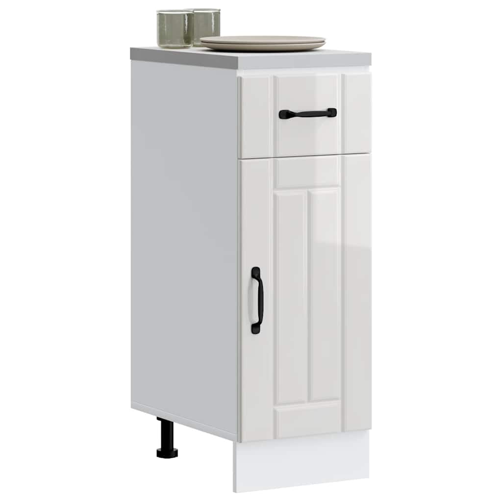 Dulap de bază de bucătărie „Lucca” lemn prelucrat alb lucios GartenMobel Dekor