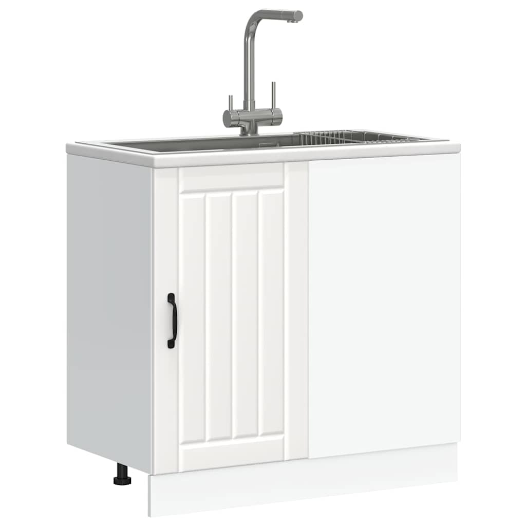 Dulap de bază pentru chiuvetă „Lucca” din lemn prelucrat alb GartenMobel Dekor
