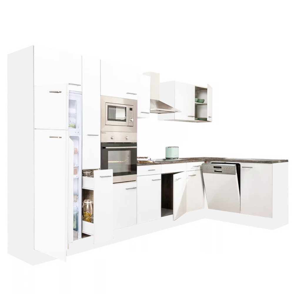 Dulap de bucătărie colț Leziter Yorki 370 cm, alb satinat, blat 38 mm