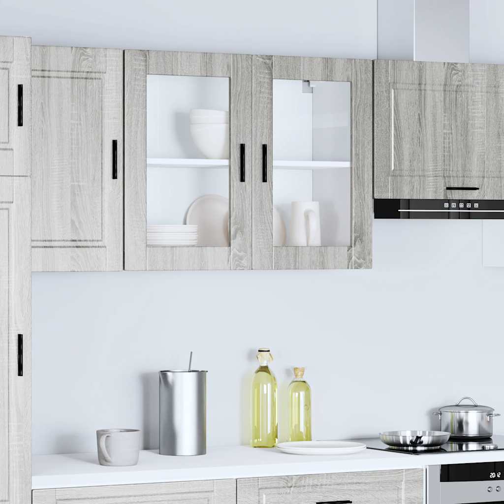 Dulap de bucătărie cu ușă din sticlă „Porto” gri Sonoma GartenMobel Dekor