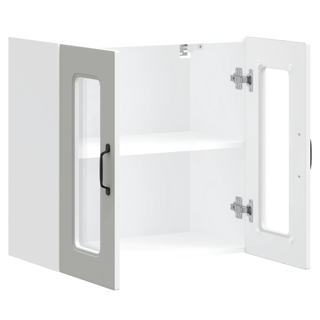 Dulap de bucătărie cu ușă sticlă „Kalmar” lemn prelucrat alb GartenMobel Dekor