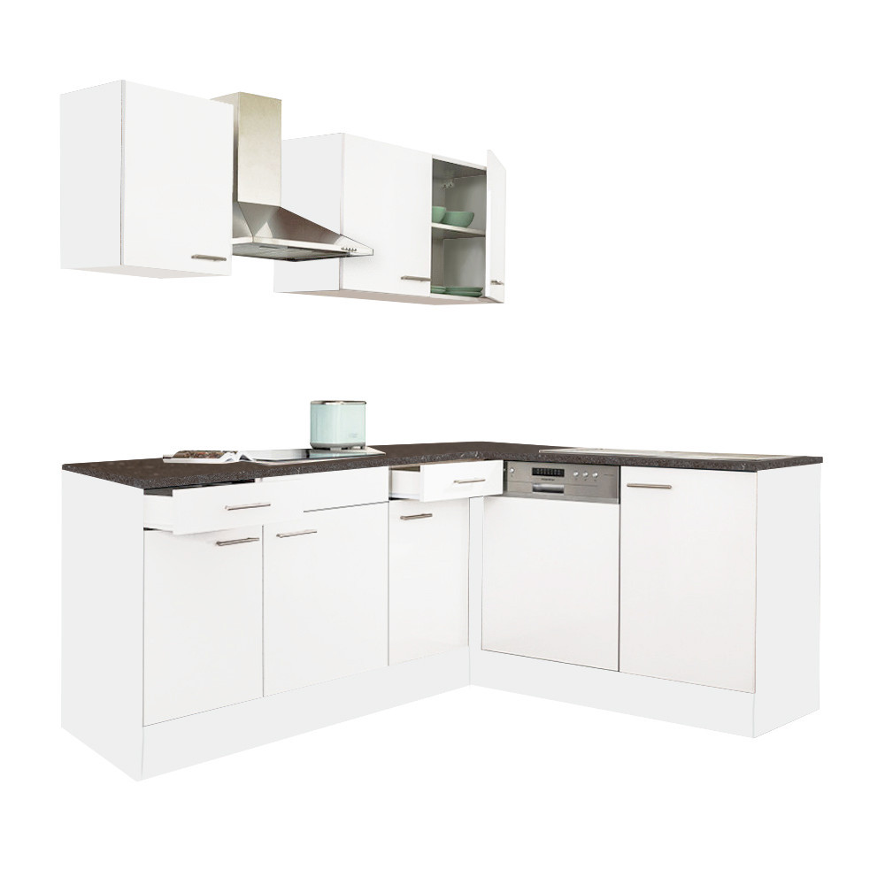 Dulap de bucătărie de colț Leziter Yorki 220 cm, alb cu front alb satinat