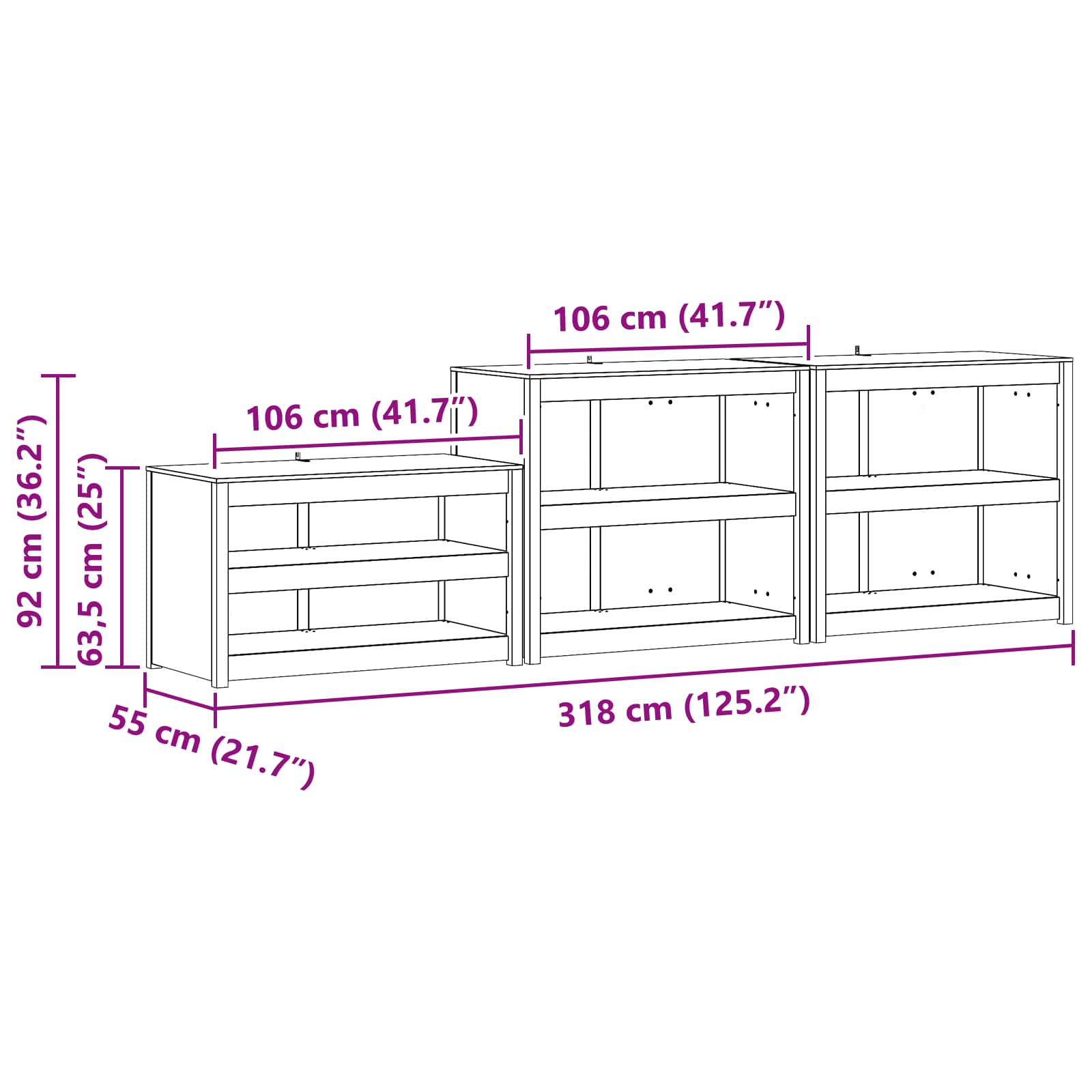 - Dimensiuni generale: 318 x 55 x 92 cm (L x l x î)