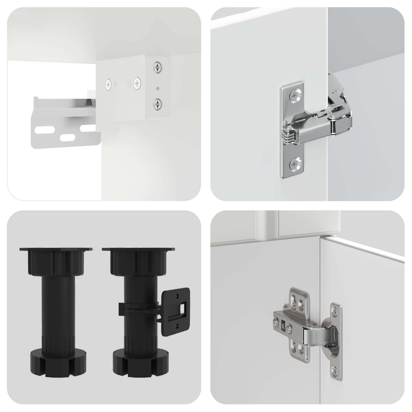 - Suport cu picioare tip post: Dulapul stă pe picioare robuste care îi dau stabilitate. Aceste picioare sunt simple dar puternice, asigurând că dulapul rămâne stabil în orice condiții.
