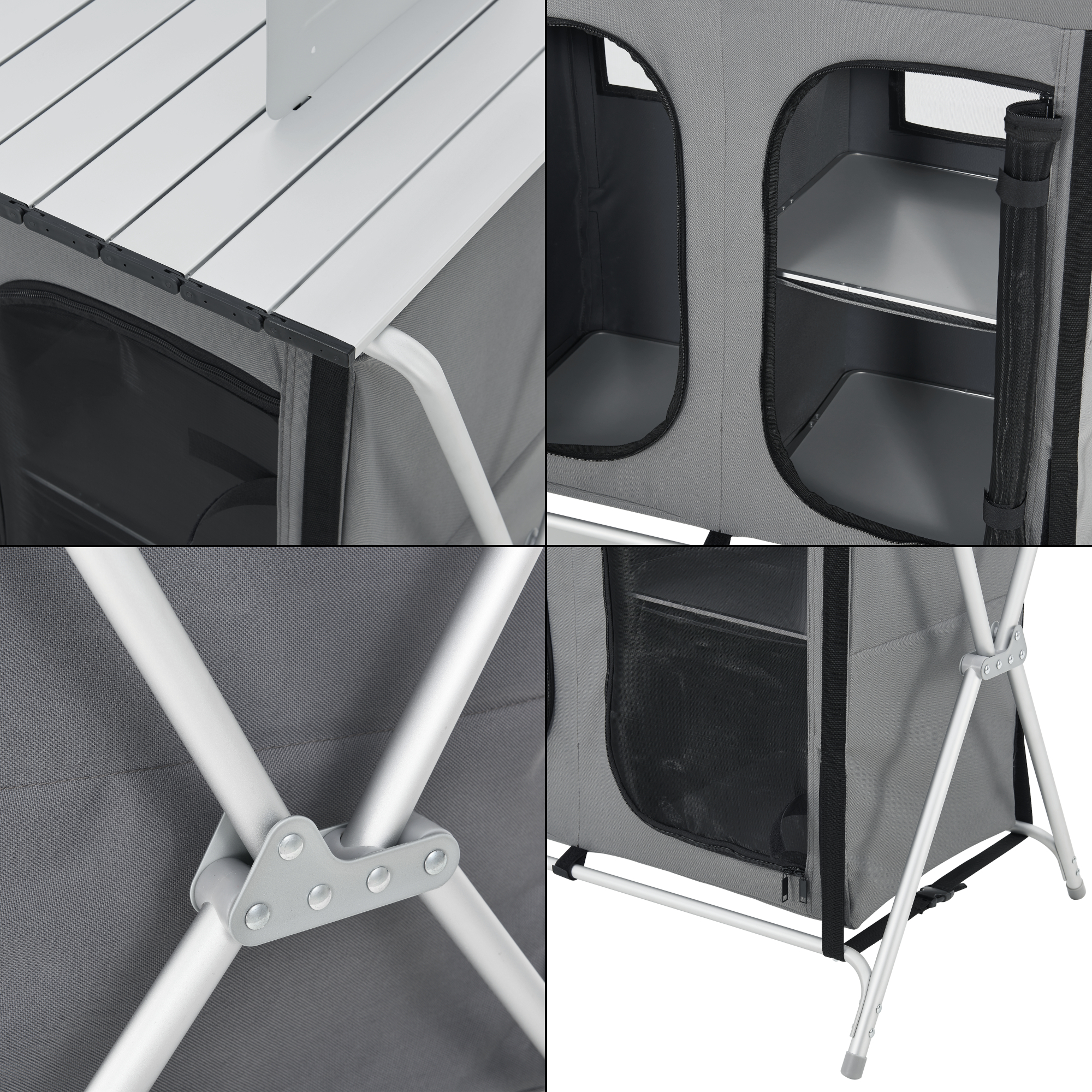 Acest dulap bucătărie camping este ideal pentru vacanțe cu rulota, ieșiri la cort, picnicuri sau utilizare în grădină. Poate fi folosit pentru depozitarea farfuriilor, paharelor, proviziilor și ustensilelor, oferind în același timp o suprafață comodă pentru pregătirea mesei.