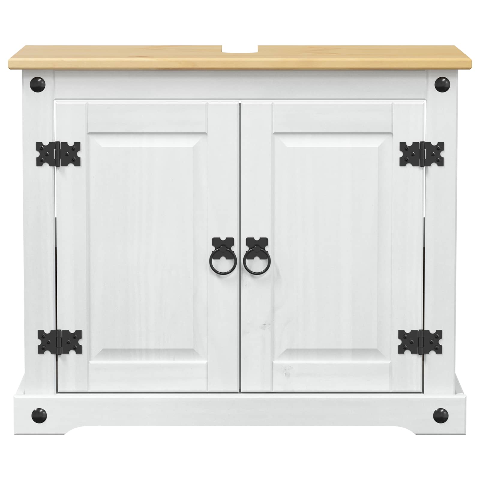 Dulap de chiuvetă cu raft Alb 73 x 33 x 60 cm Lemn de pin masiv GartenMobel Dekor