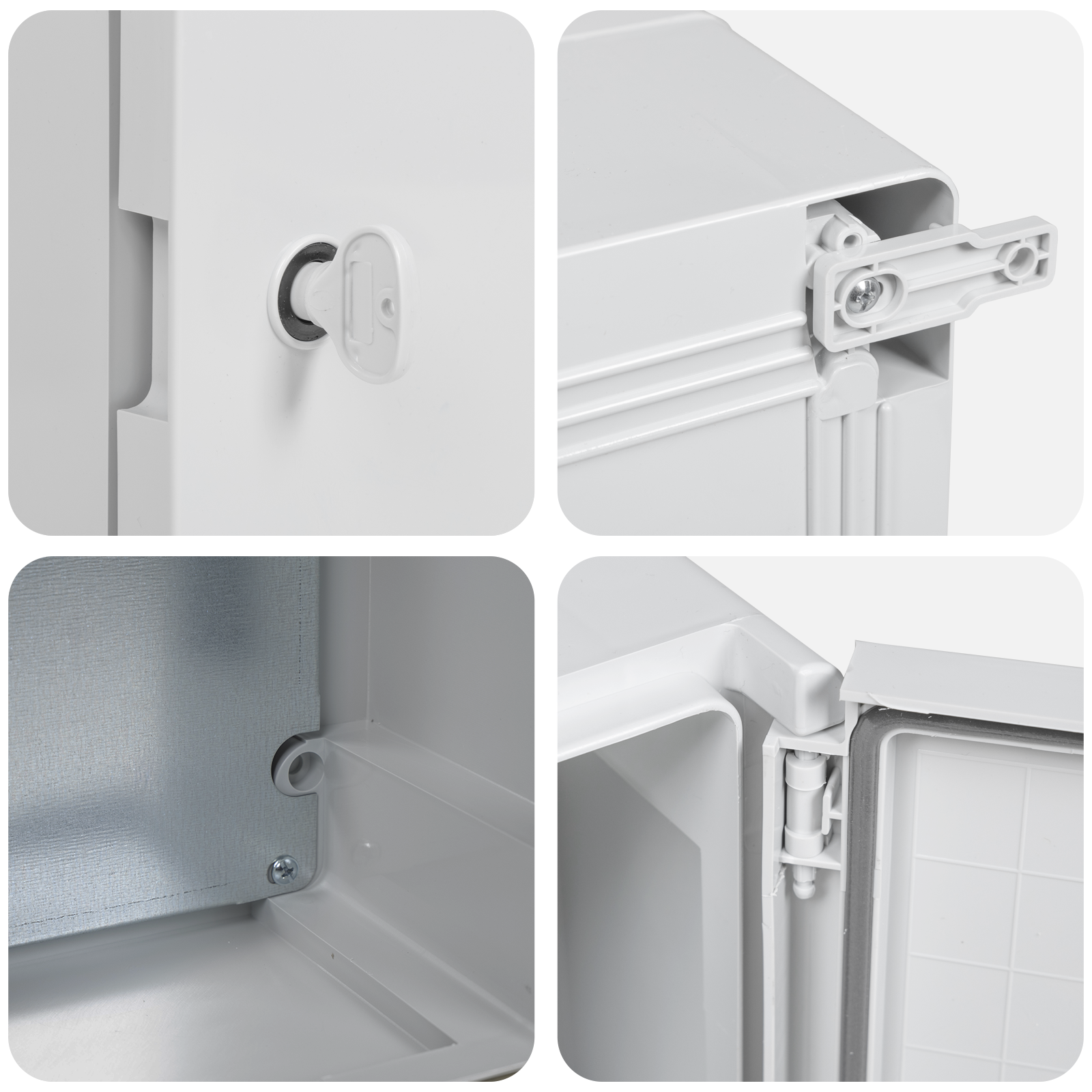 Sertarul ăsta e o soluție tare și practică atât pentru interior, cât și pentru exterior. Cu designul lui modern gri și construcția solidă din plastic ABS, se potrivește bine în medii industriale și de atelier, păstrând echipamentele electrice în siguranță.