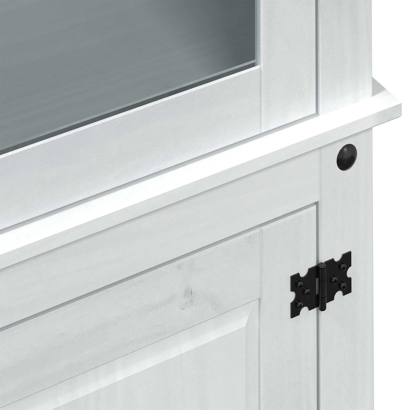 - Compoziție din lemn masiv de pin: Cabinetul de expunere din lemn masiv de pin are un aspect rustic autentic, cu texturi bogate și vizibile. Lemnul e cunoscut pentru durabilitatea lui, deci cabinetul îți va ține obiectele în siguranță pentru mult timp, păstrându-și farmecul.
