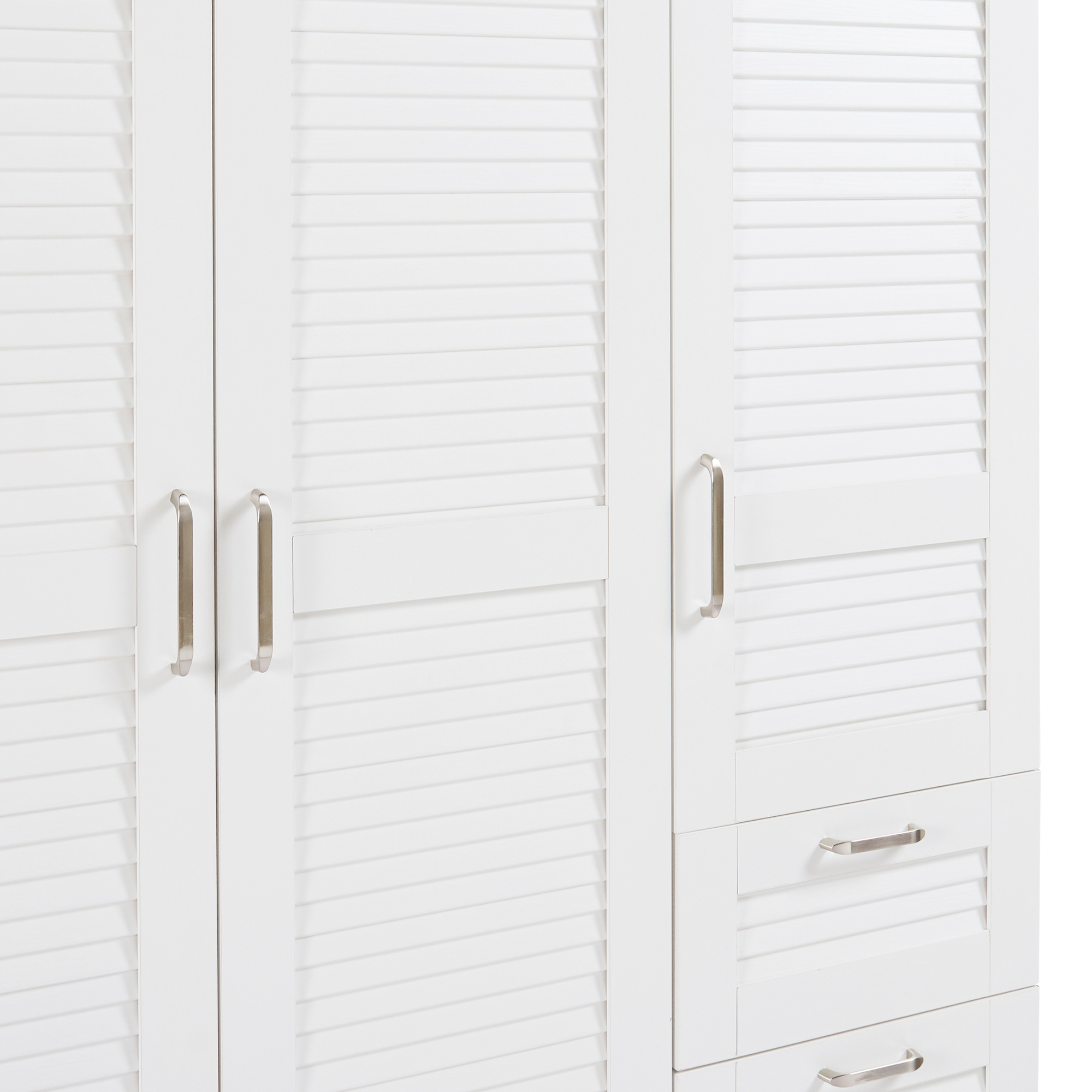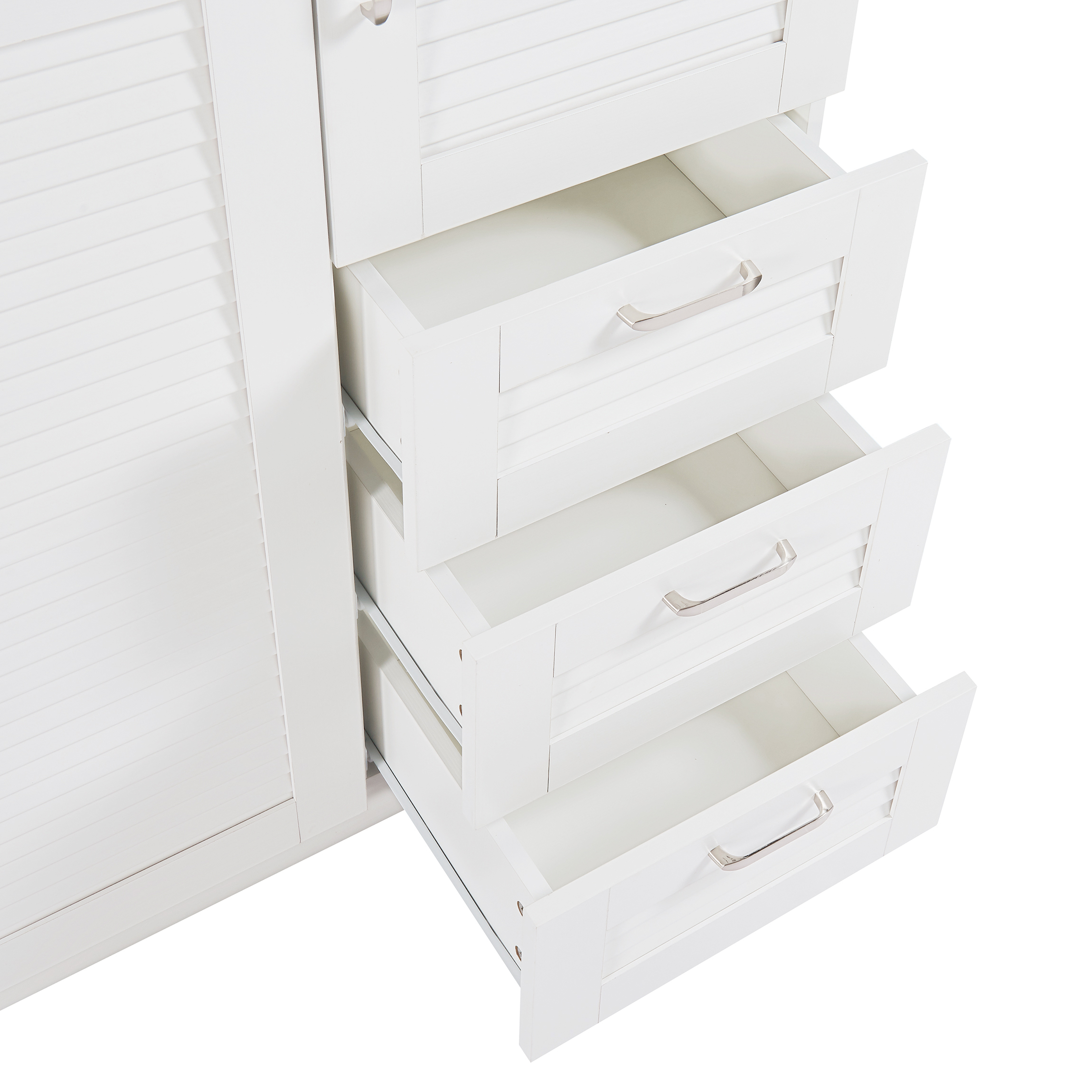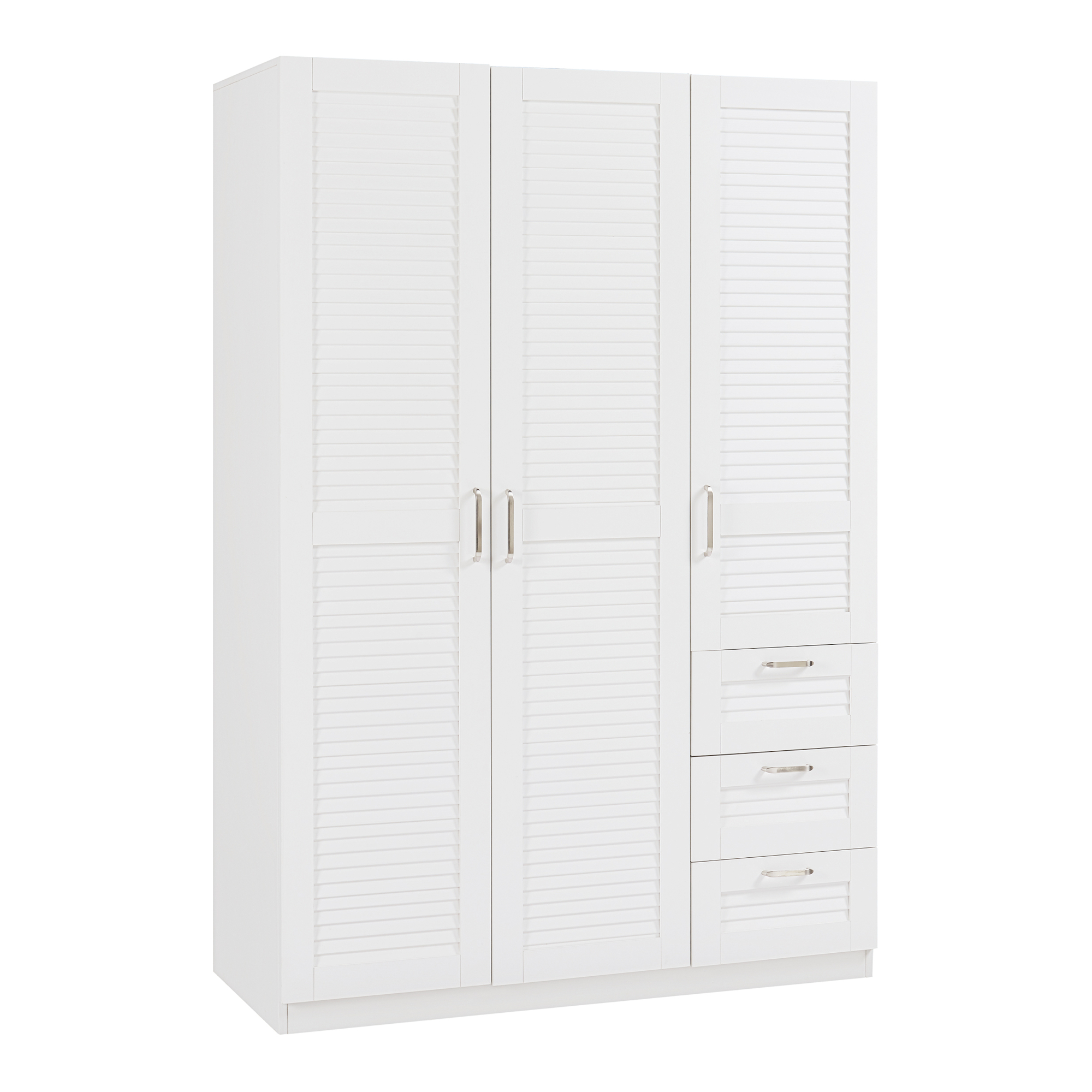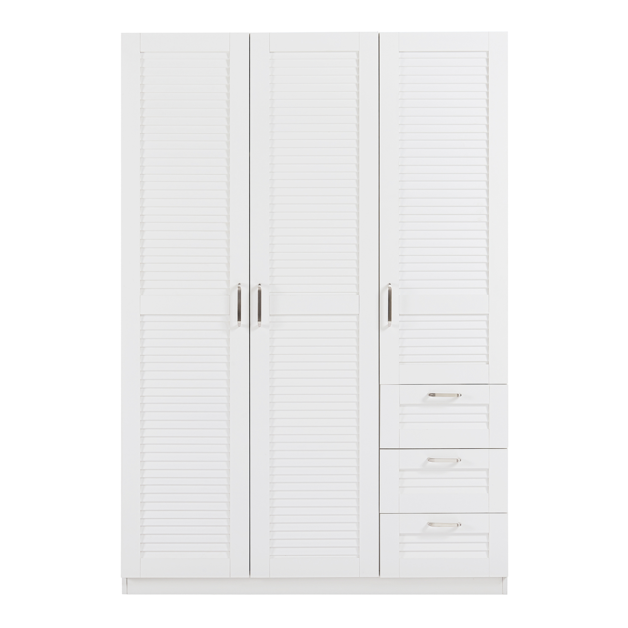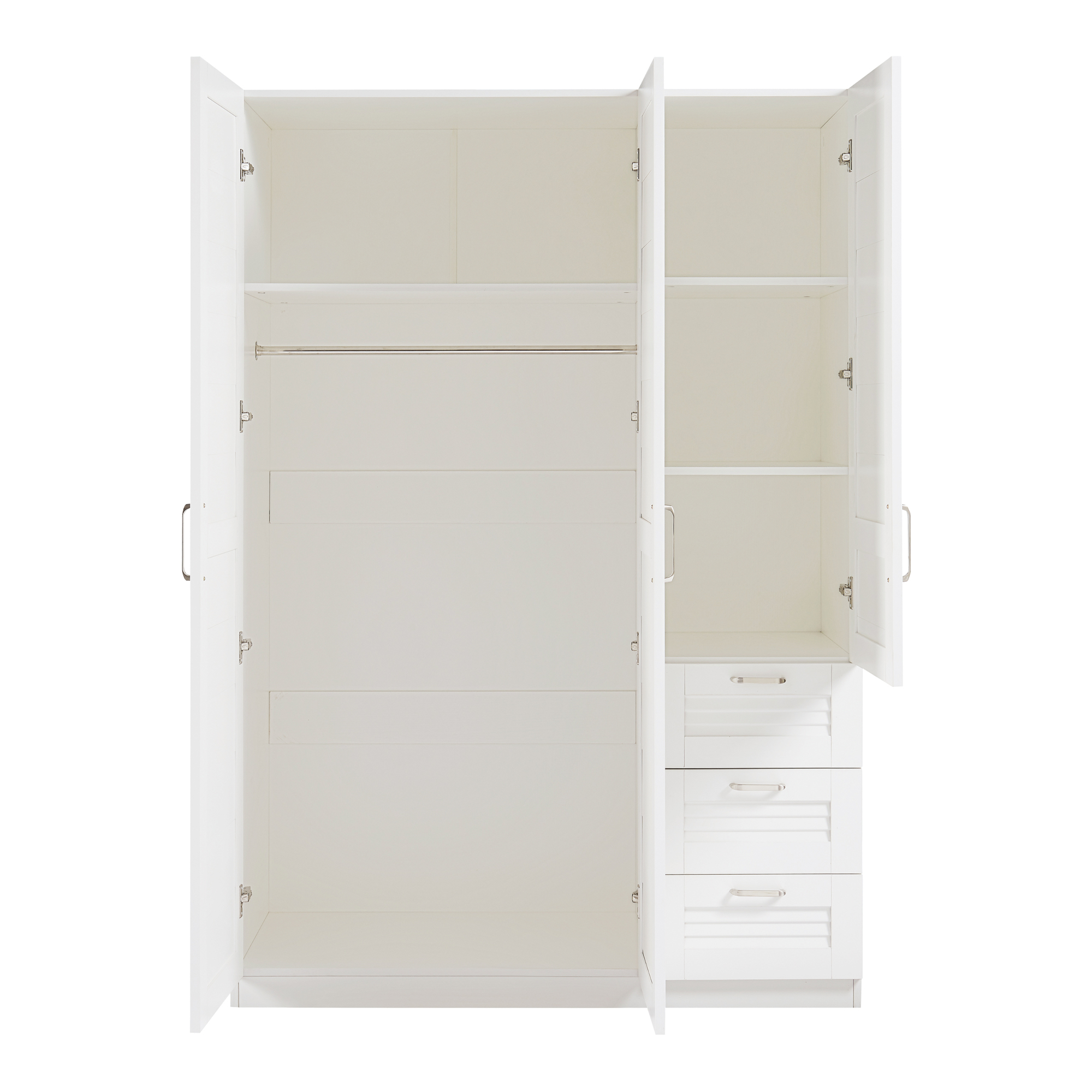 Dulap de haine Finning alb cu 3 uși, 3 sertare și bară pentru umerașe
