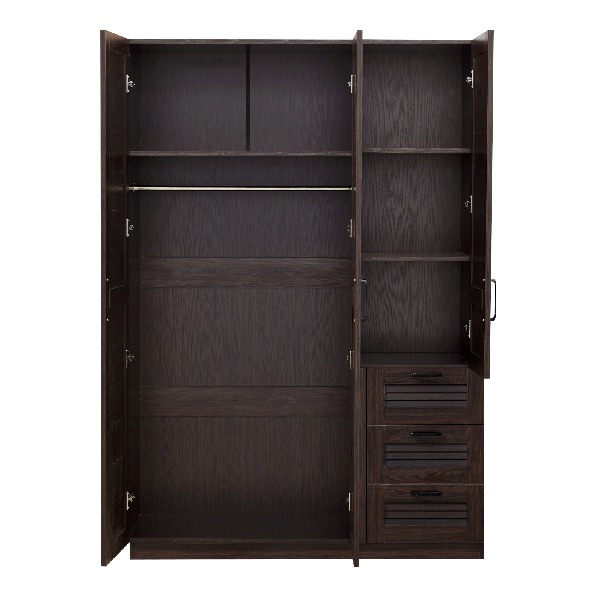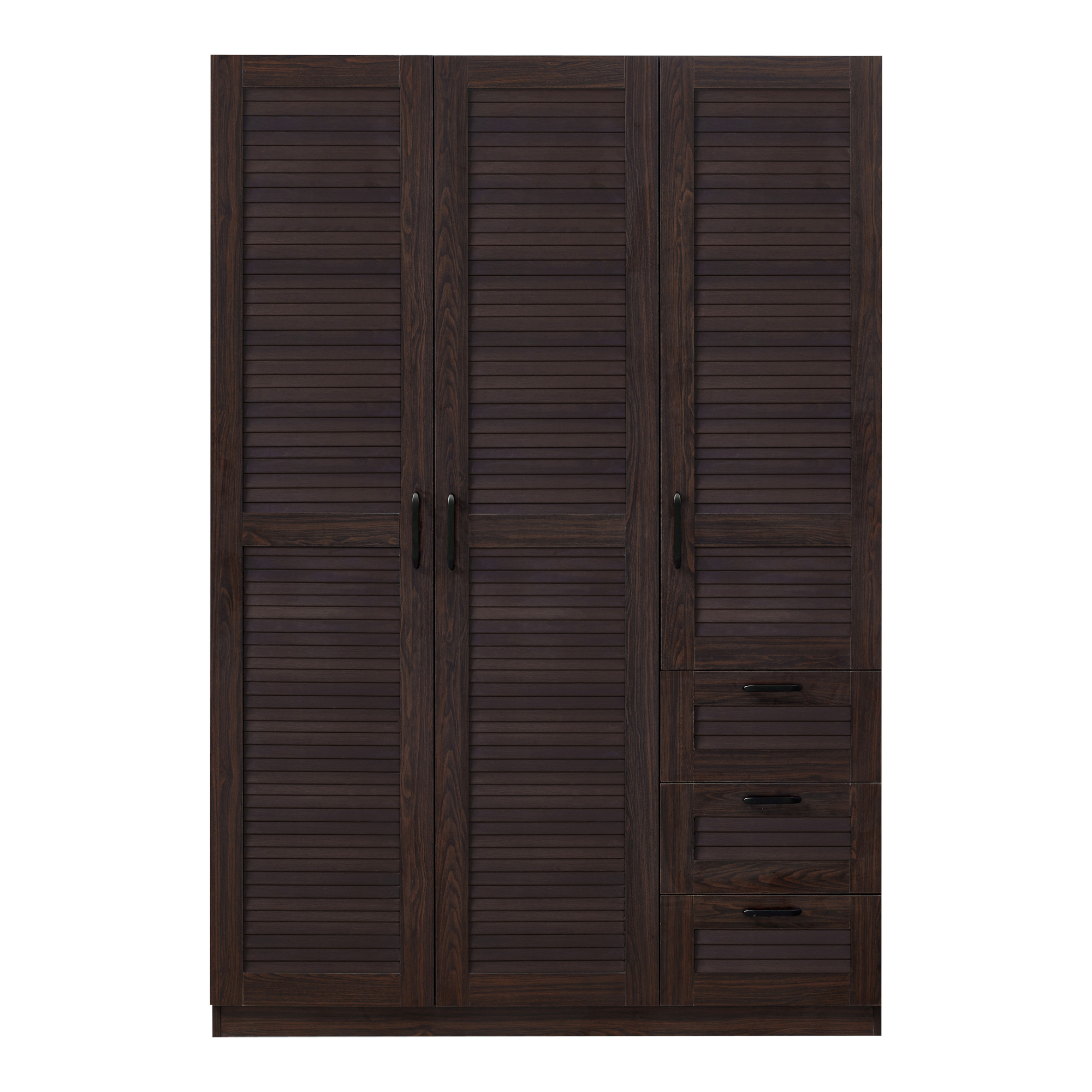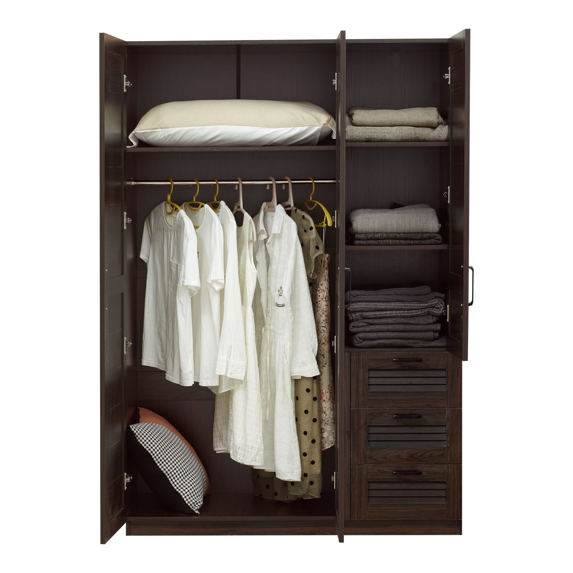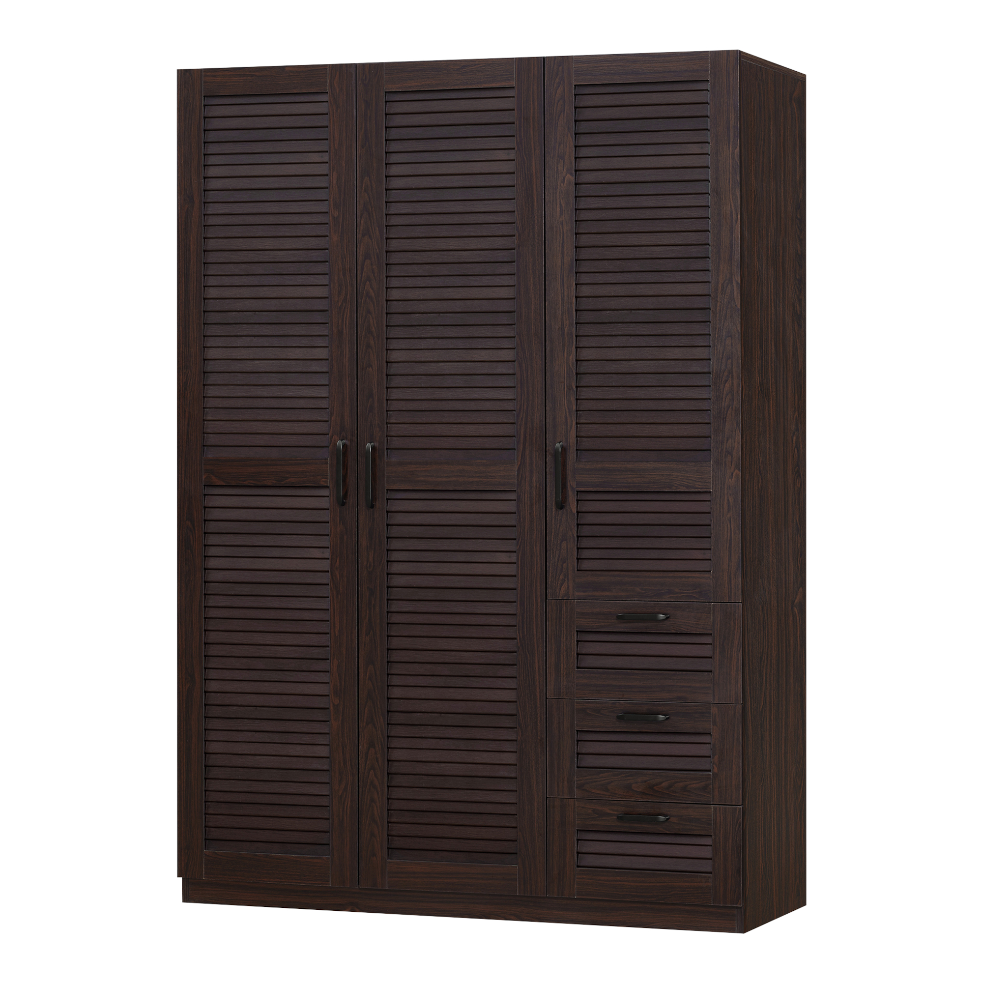 Dulap de haine Finning cu 3 uși și 3 sertare, nuc închis, 176x120x52 cm