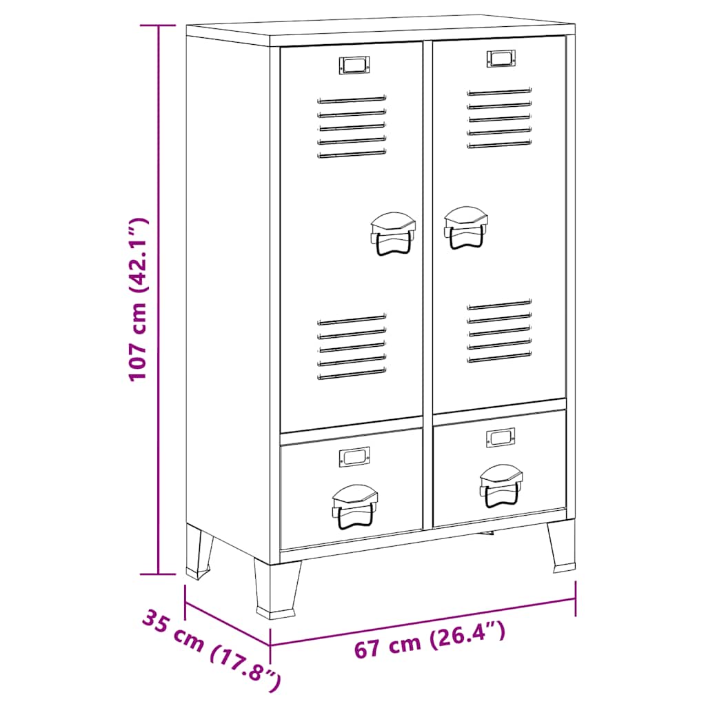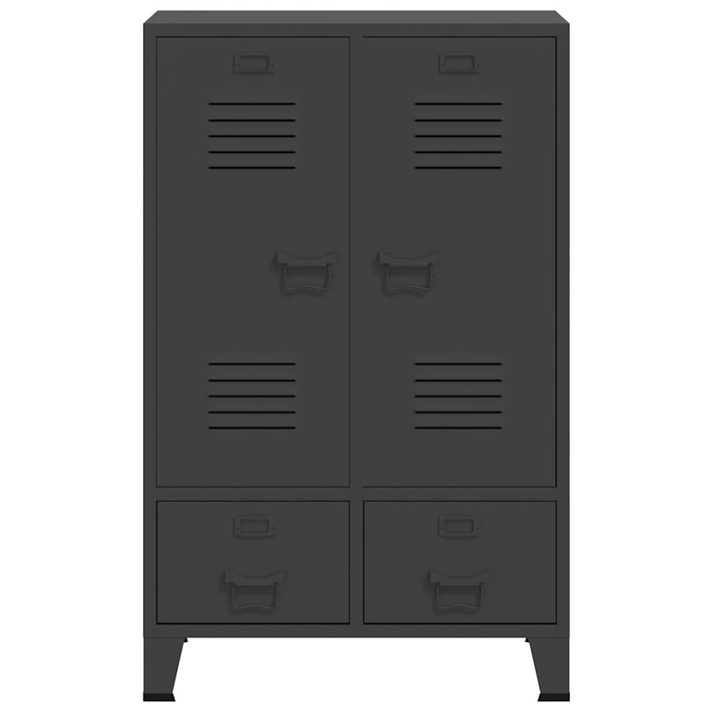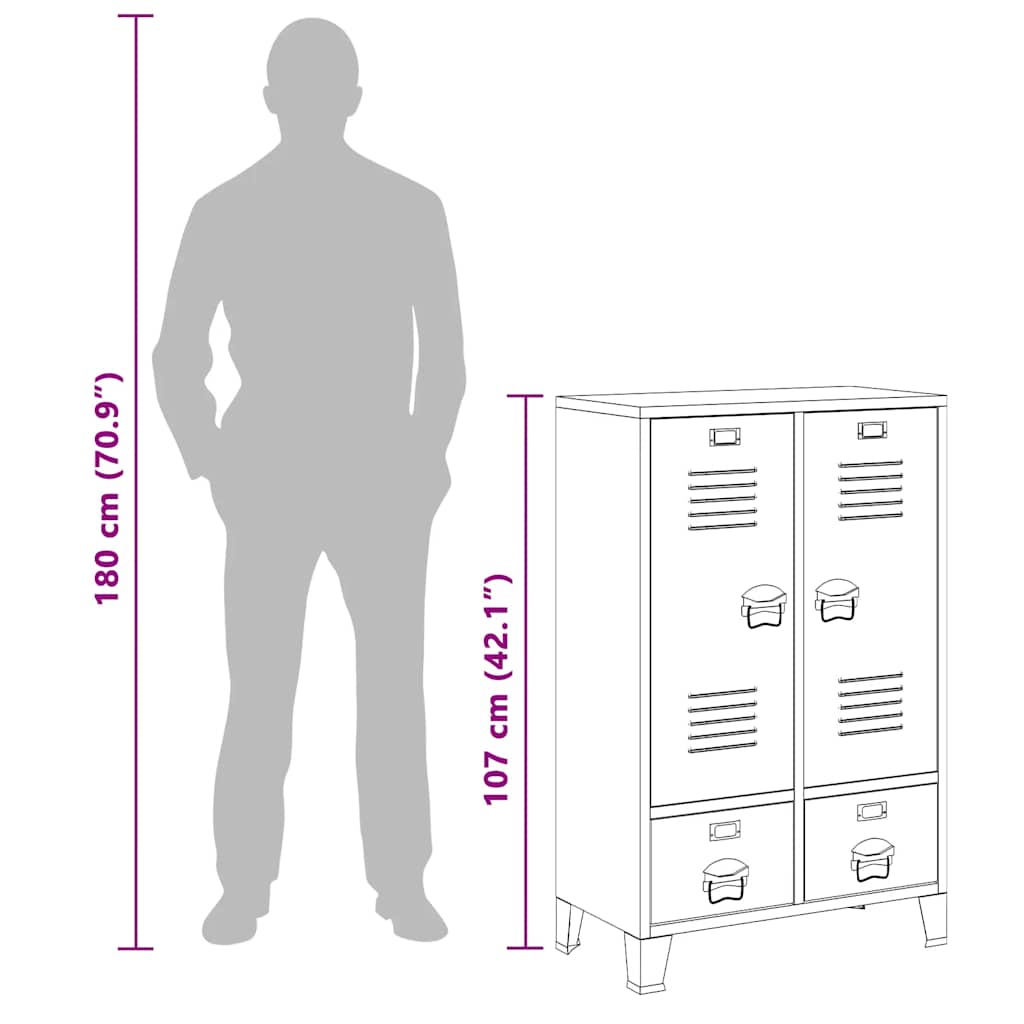 Acest dulap de depozitare este realizat din oțel, fiind durabil și ușor de curățat. Acest dulap are 2 rafturi reglabile care vă permit să vă sortați hainele în diferite categorii și 2 sertare pentru depozitarea și organizarea șosetelor, lenjeriei etc. Sertarele cu rulmenți în 2 secțiuni asigură deschiderea și închiderea lină, chiar și sub sarcină crescută (sertarele pot fi extinse complet). Fiecare ușă are un suport pentru cartea de vizită și orificii de ventilație, care îi completează aspectul industrial.