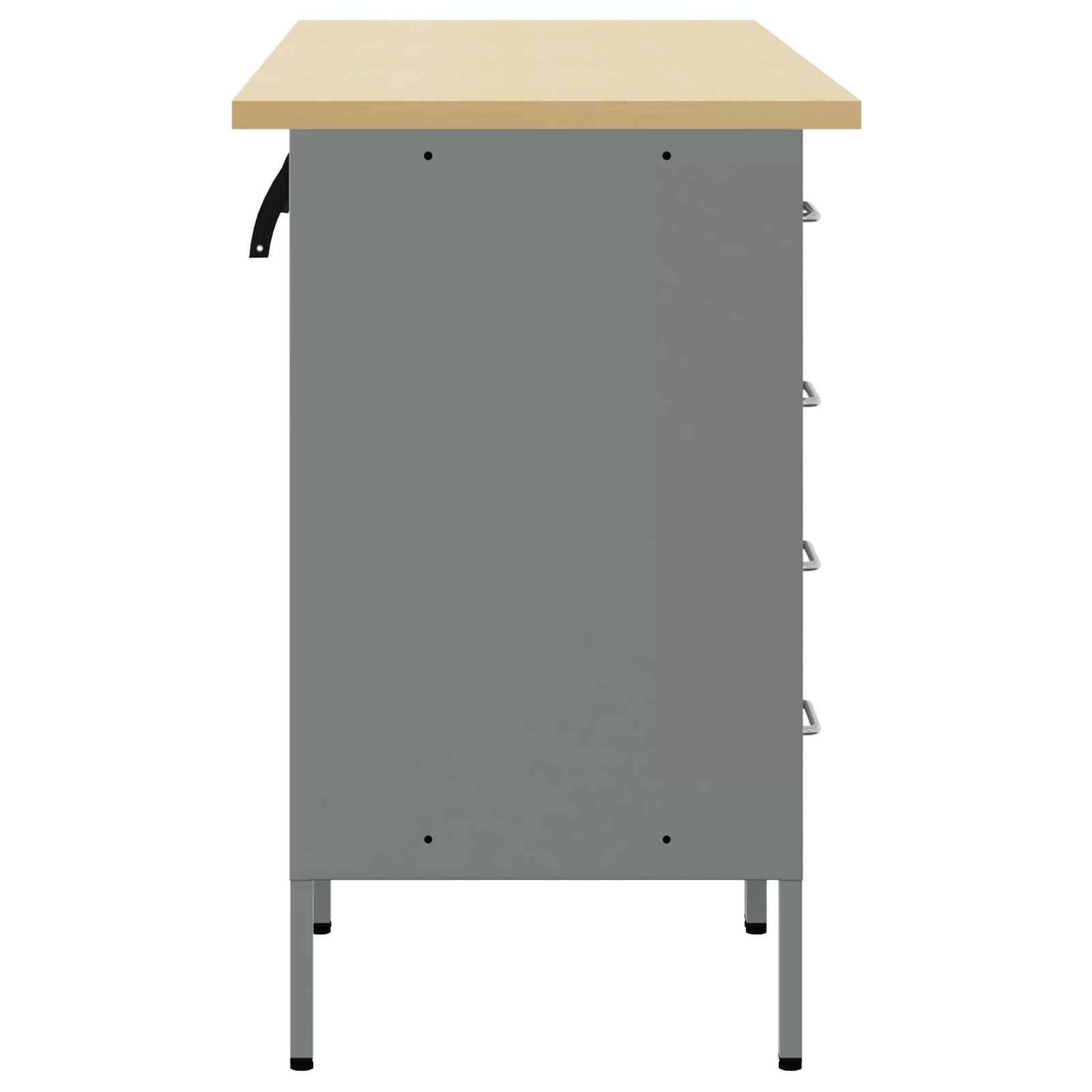 Cabinetul ăsta de lucru industrial cu 4 sertare e modul perfect să-ți organizezi garajul sau atelierul. Are un design chic negru și gri și un finisaj care imită lemnul, combinând practicabilitatea cu un look industrial. Oferă funcționalitate și organizare pentru orice loc de muncă.