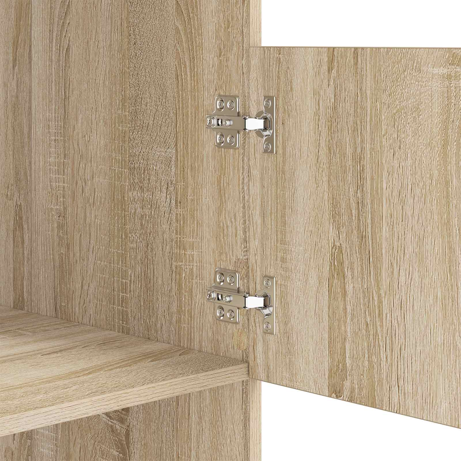 - Uși cu balama solide: Ușile sunt din lemn prelucrat și se deschid ușor, asigurând acces rapid la ceea ce ai depozitat. Construcția robustă le face să reziste mult, întărind durabilitatea dulapului.