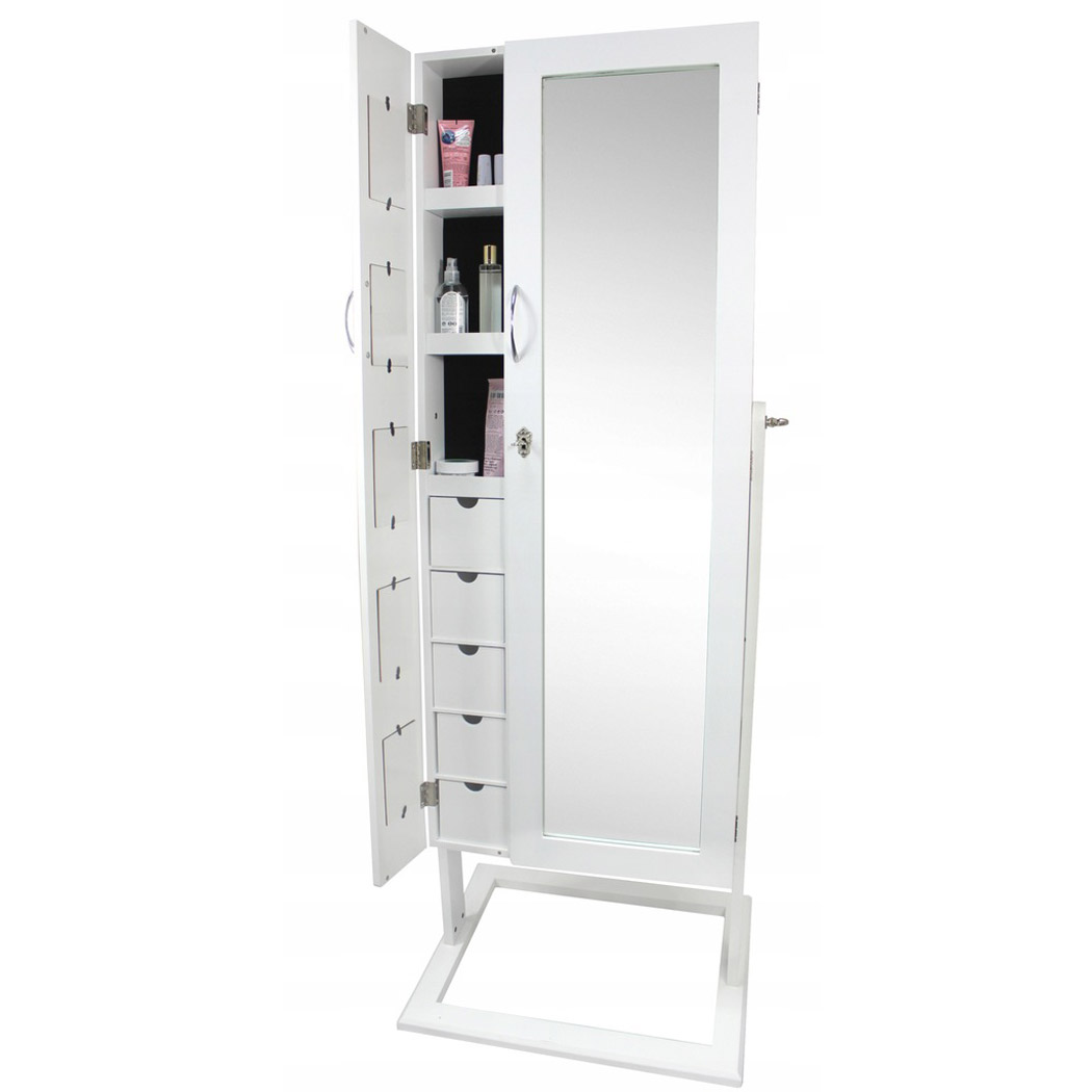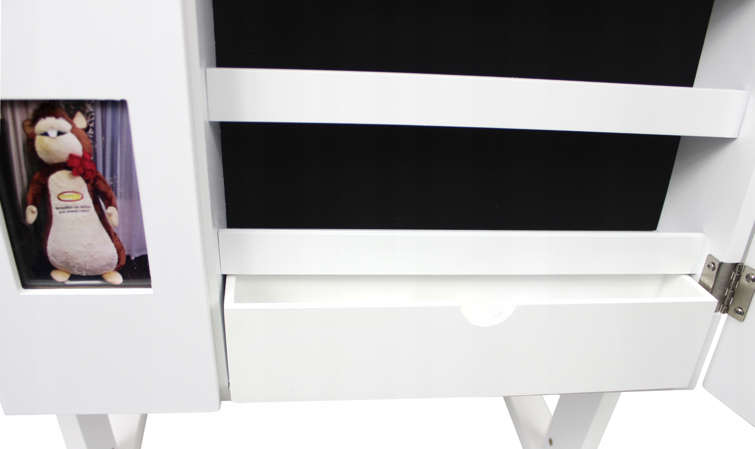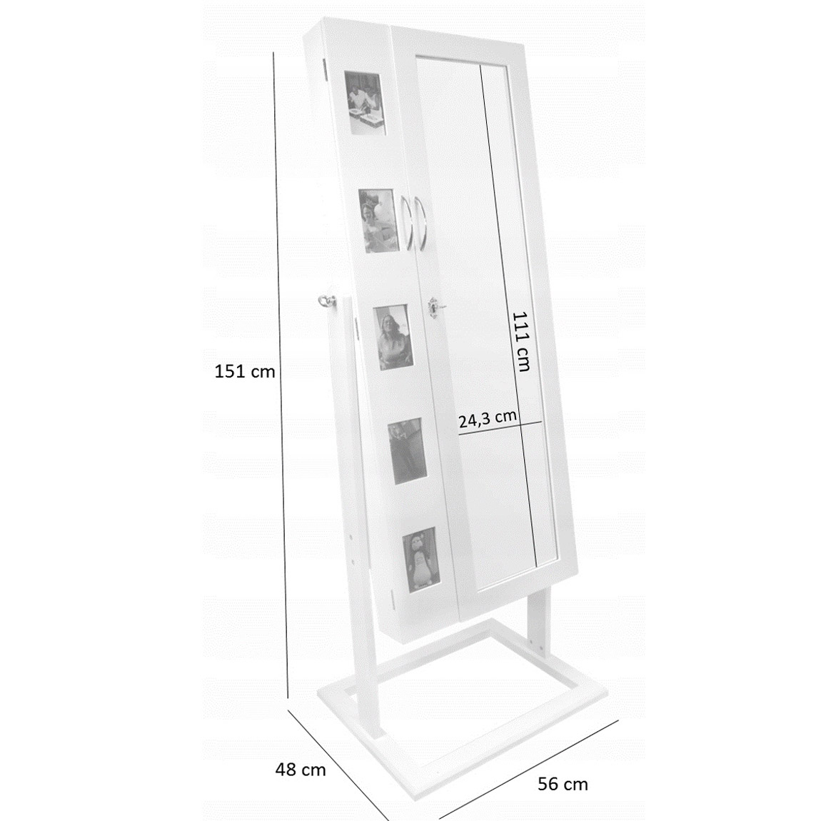 Dulap de toaleta cu oglinda, 2 usi cu spatiu dublu de depozitare bijuterii si cosmetice, 5 rame foto, 48x56x151cm, alb Household NewTrend