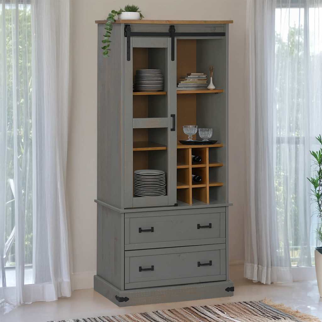 Dulap de vinuri HALDEN cu rafturi pentru vin ușă glisantă gri GartenMobel Dekor