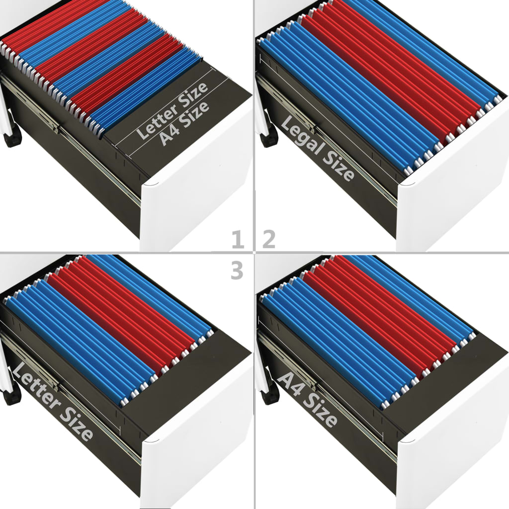 Acest dulap de birou este realizat din oțel, fiind durabil și ușor de curățat. Cu 3 sertare și o încuietoare, acest dulap vă permite să sortați cu grijă dosarele în diferite categorii și să le păstrați în siguranță. Fiecare sertar este echipat cu 1 bară detașabilă, care poate fi combinată liber pentru a stoca dosare de diferite dimensiuni. Dulapul mobil are o tavă pentru creioane, care vă ajută să păstrați ordinea pe birou. Sertarele cu rulmenți cu bile în 3 secțiuni, asigură deschiderea și închiderea lină, chiar și sub sarcină crescută, aceste sertare putând fi deschise complet. În plus, colțurile din stânga și din dreapta ale dulapului sunt rotunde.