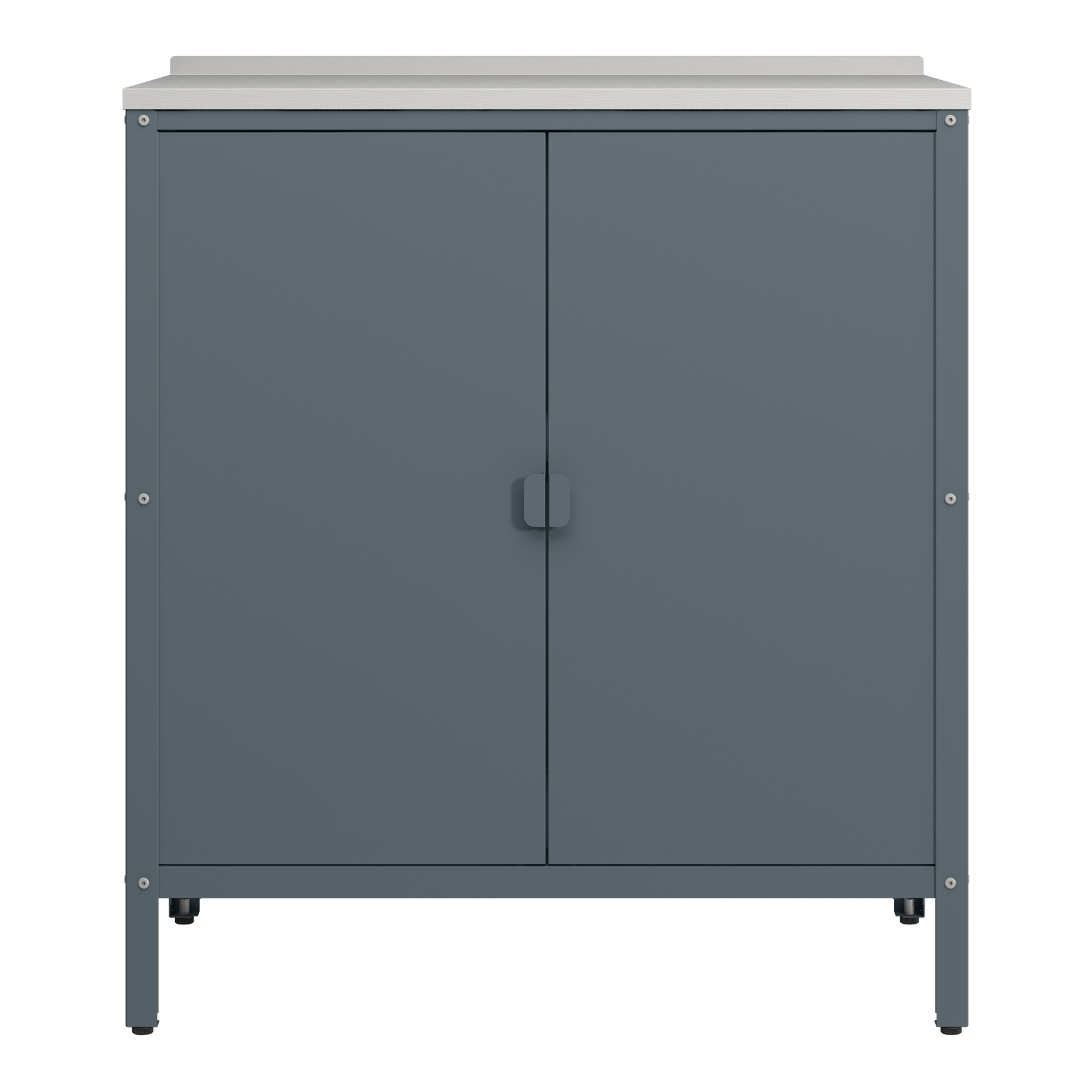 Acest dulap metalic de gradina este potrivit pentru depozitarea uneltelor mici, accesoriilor pentru gratar, veselei de exterior, textilelor sau obiectelor decorative. Datorita blatului practic, poate fi folosit si ca mini statie de lucru pe terasa sau langa piscina.