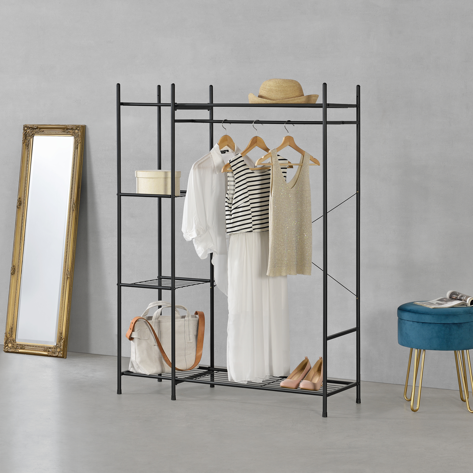 Dulap haine cu 4 rafturi 75 Kg negru 150 x 110 x 40 cm [en.casa] HausGarden Leisure