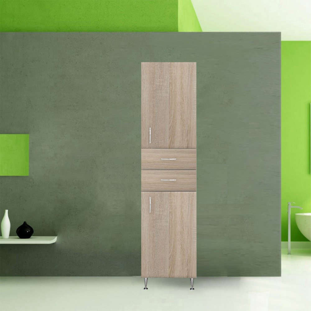 Daca vrei mai mult spatiu fara sa aglomerezi, acest dulap inalt de baie este o alegere practica pentru organizarea produselor de igiena, prosoapelor si accesoriilor. Are 2 usi si 2 sertare, iar finisajul stejar Sonoma se potriveste usor cu majoritatea amenajarilor, inclusiv in bai mici.